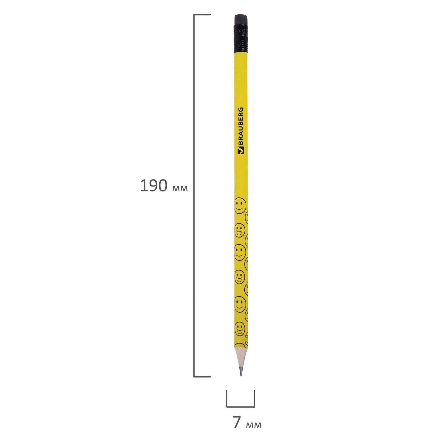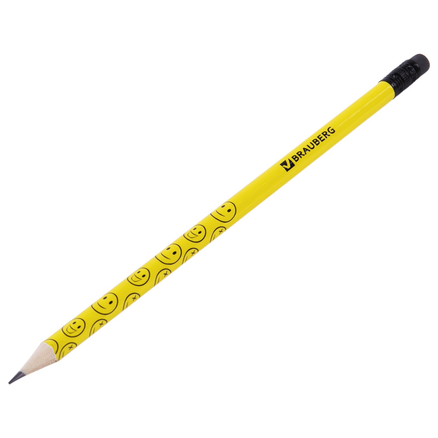 Карандаш чернографитный BRAUBERG, 1 шт., "Смайлики", НВ, c ластиком, корпус желтый, заточенный, 180654