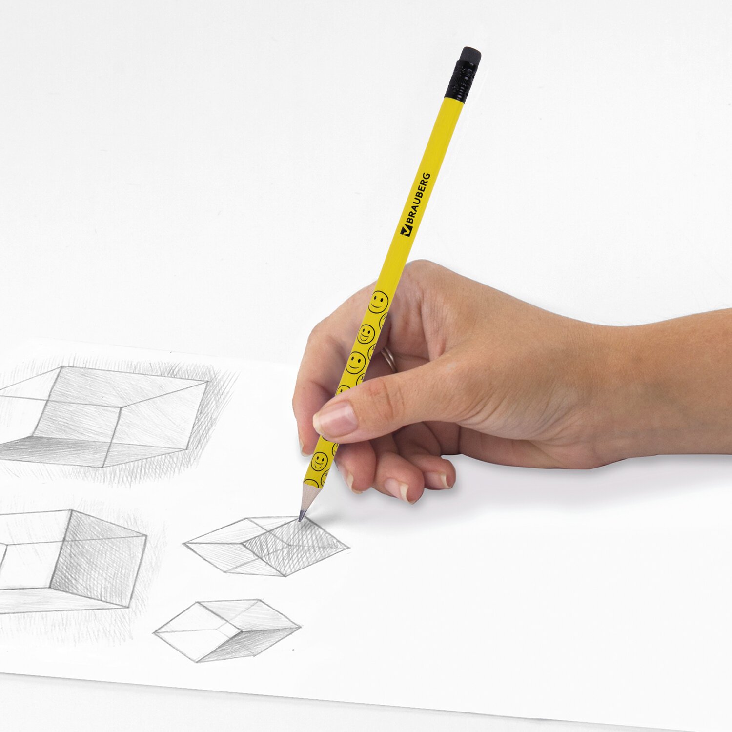Чернографитный карандаш BRAUBERG "Смайлики" - первый помощник для выполнения проектно-конструкторских работ, позволяет сделать легкий набросок, быстрый стремительный рисунок или нарисовать полноценную картину.