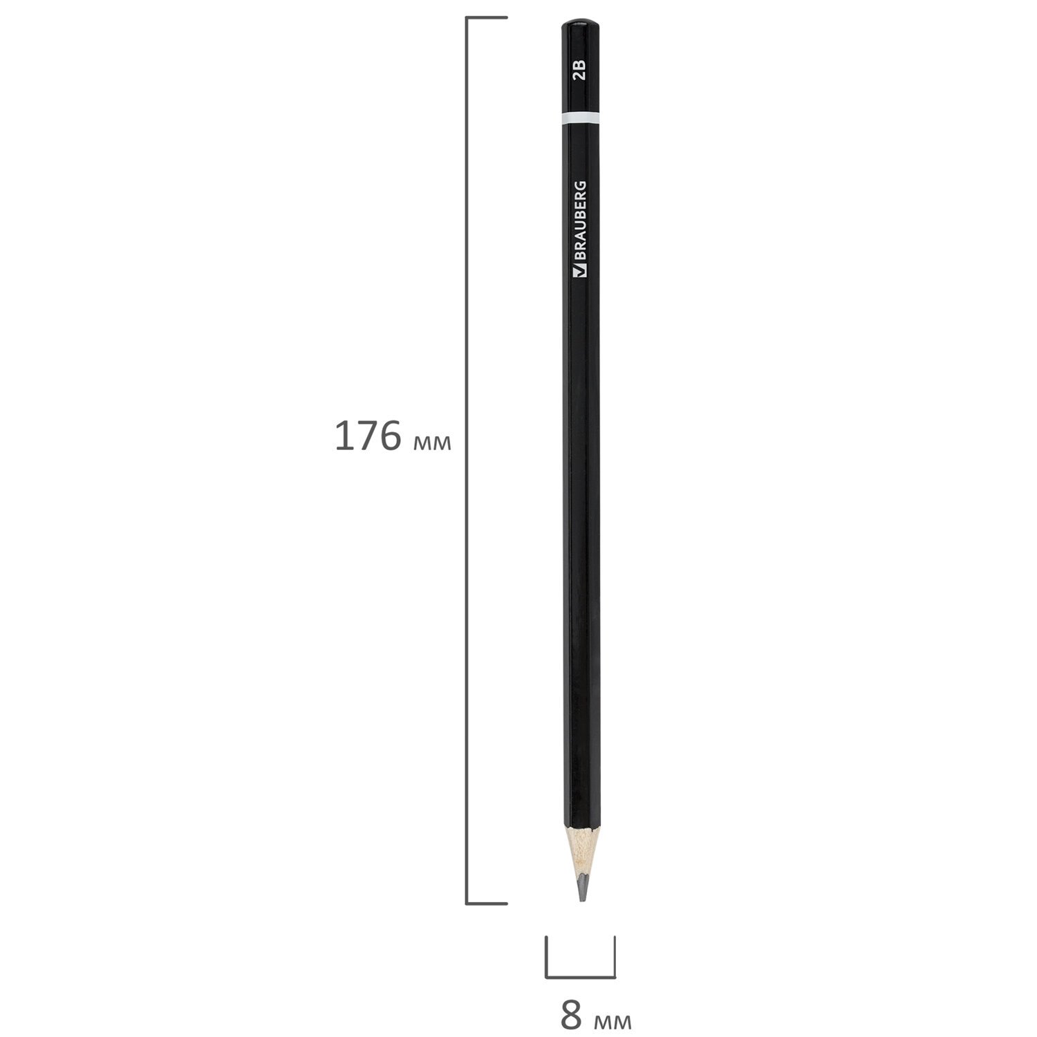 Карандаш изготовлен из дерева высокого качества. Имеет шестигранное сечение. Карандаш длиной 176 мм легко точится и не крошится. Твердость грифеля 2B. Диаметр грифеля - 2,05 мм. Выполнен в черном цвете. Поставляется заточенным.