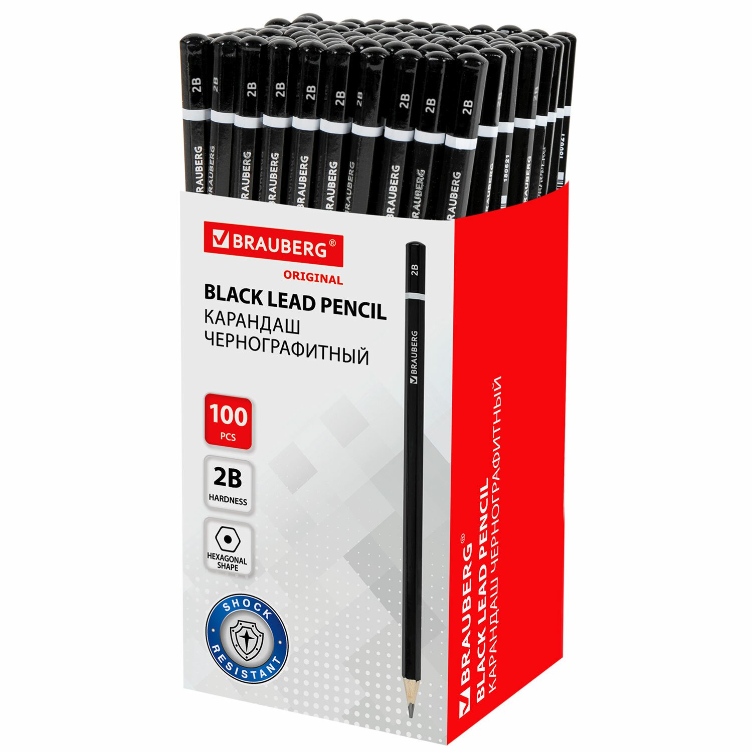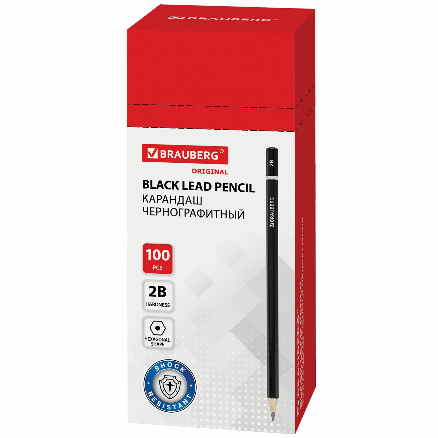Карандаш чернографитный BRAUBERG, 1 шт., "Touch line", 2В, корпус черный, заточенный, 180623
