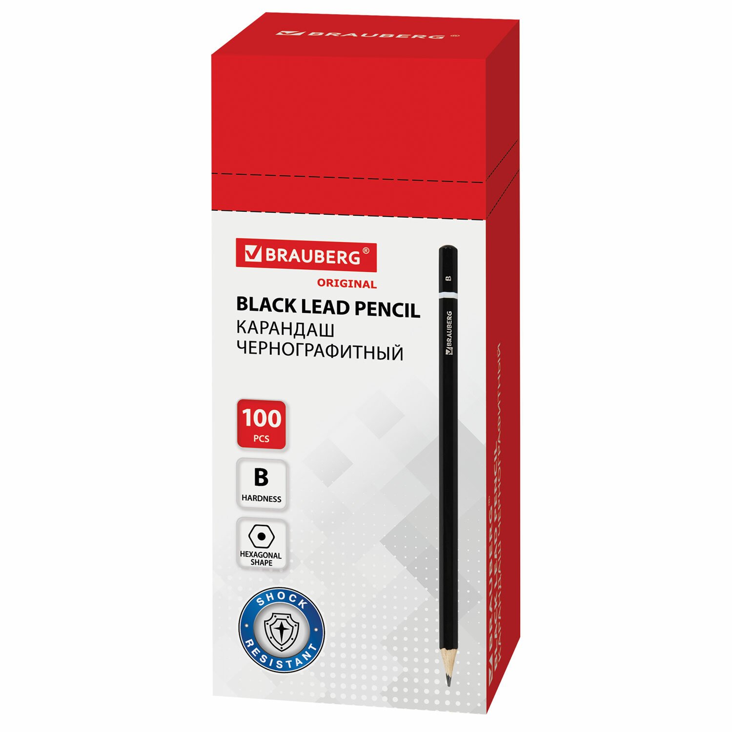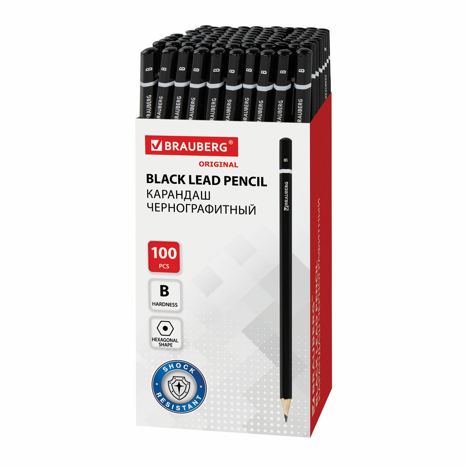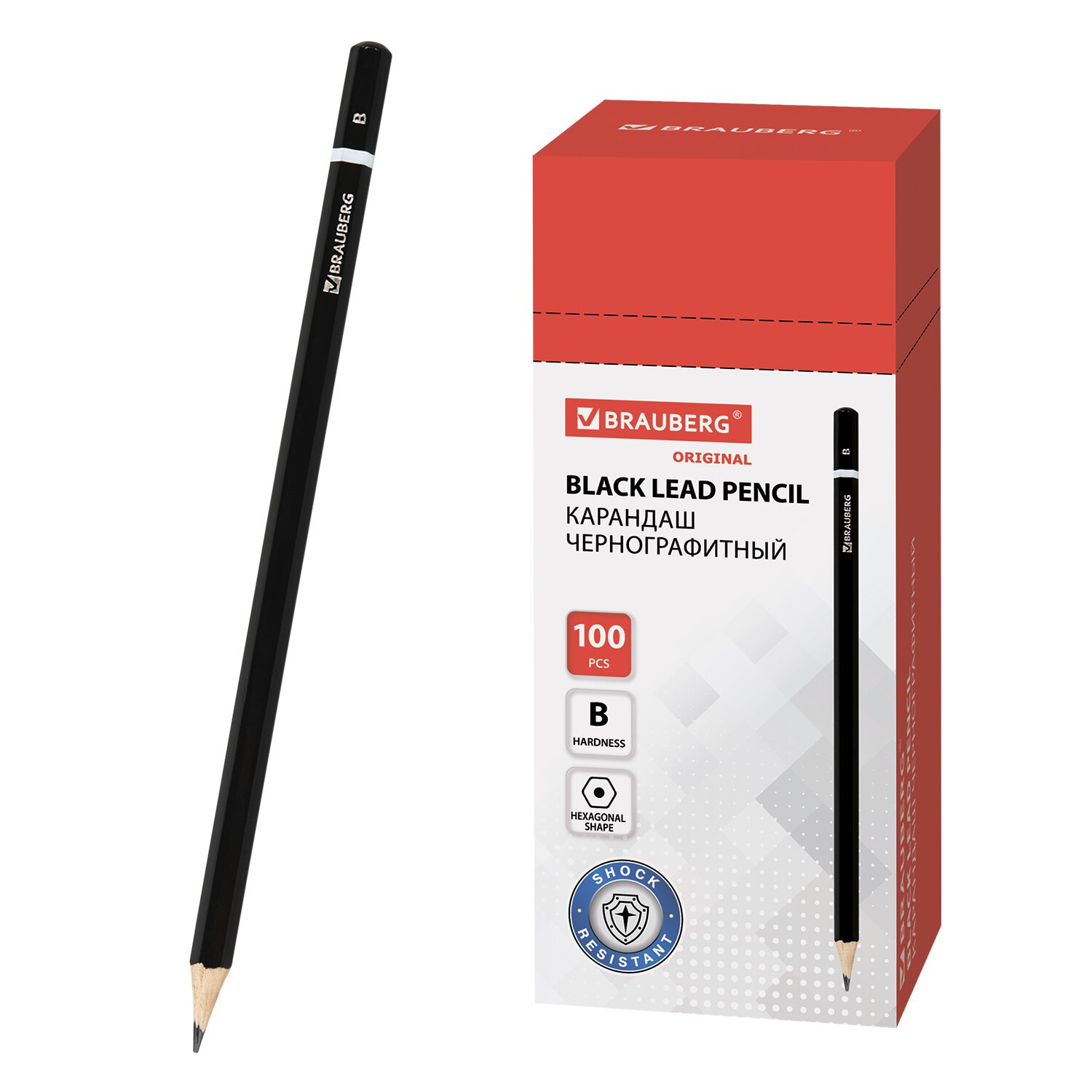 Карандаш чернографитный BRAUBERG, 1 шт., "Touch line", В, корпус черный, заточенный, 180622