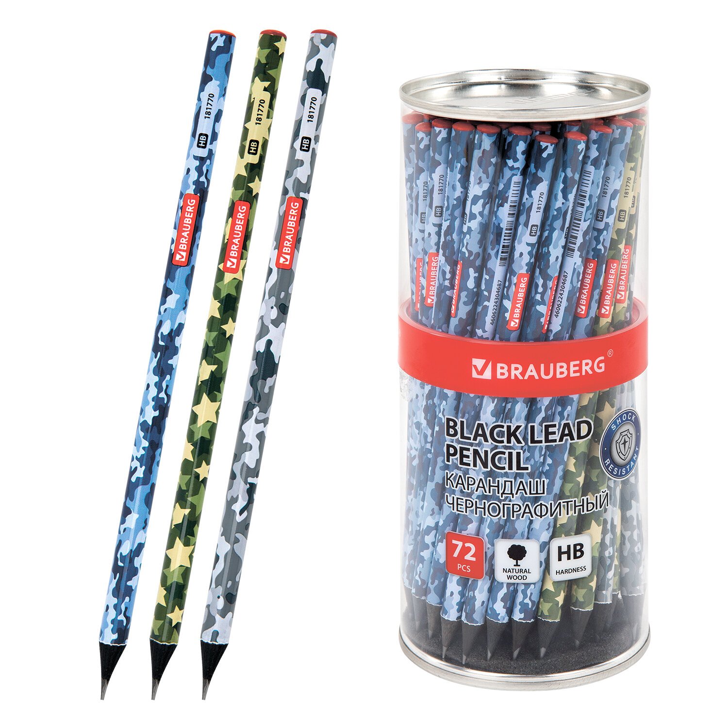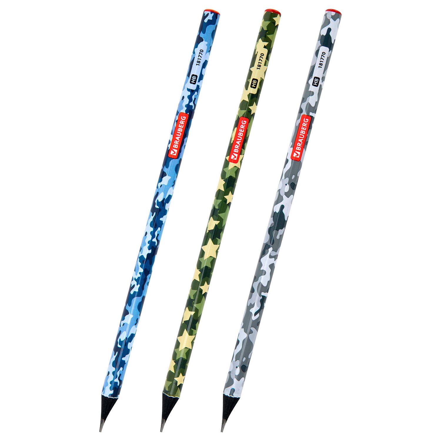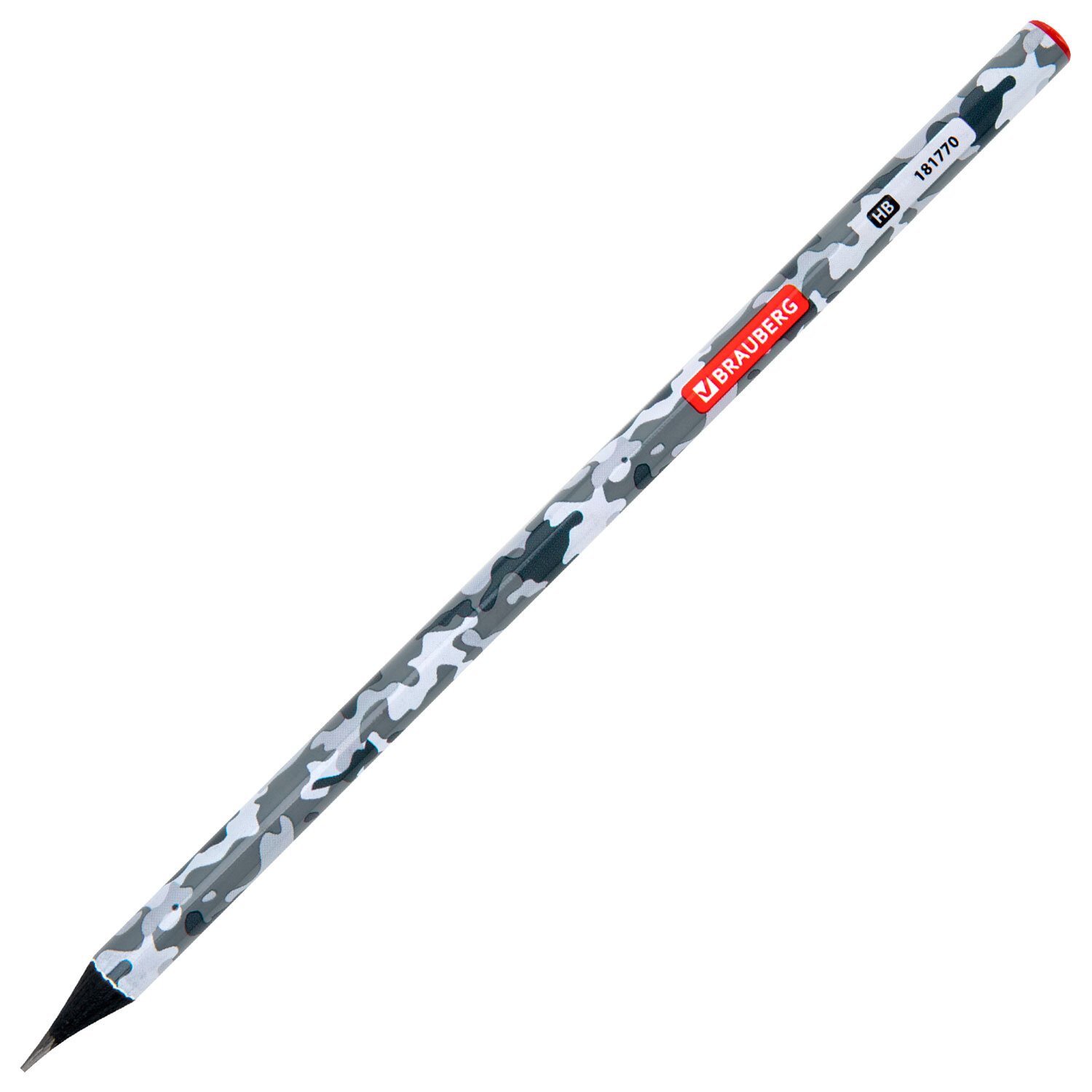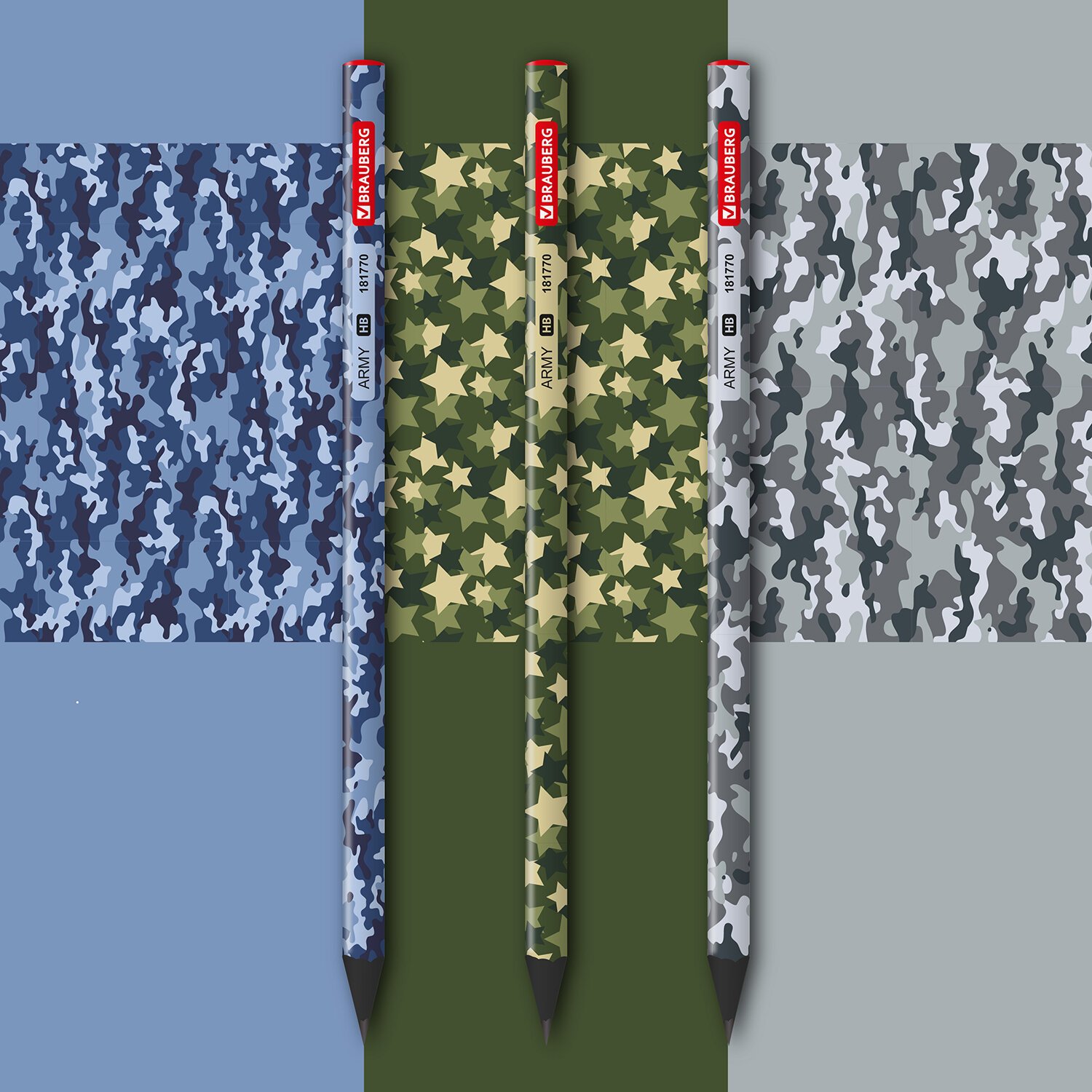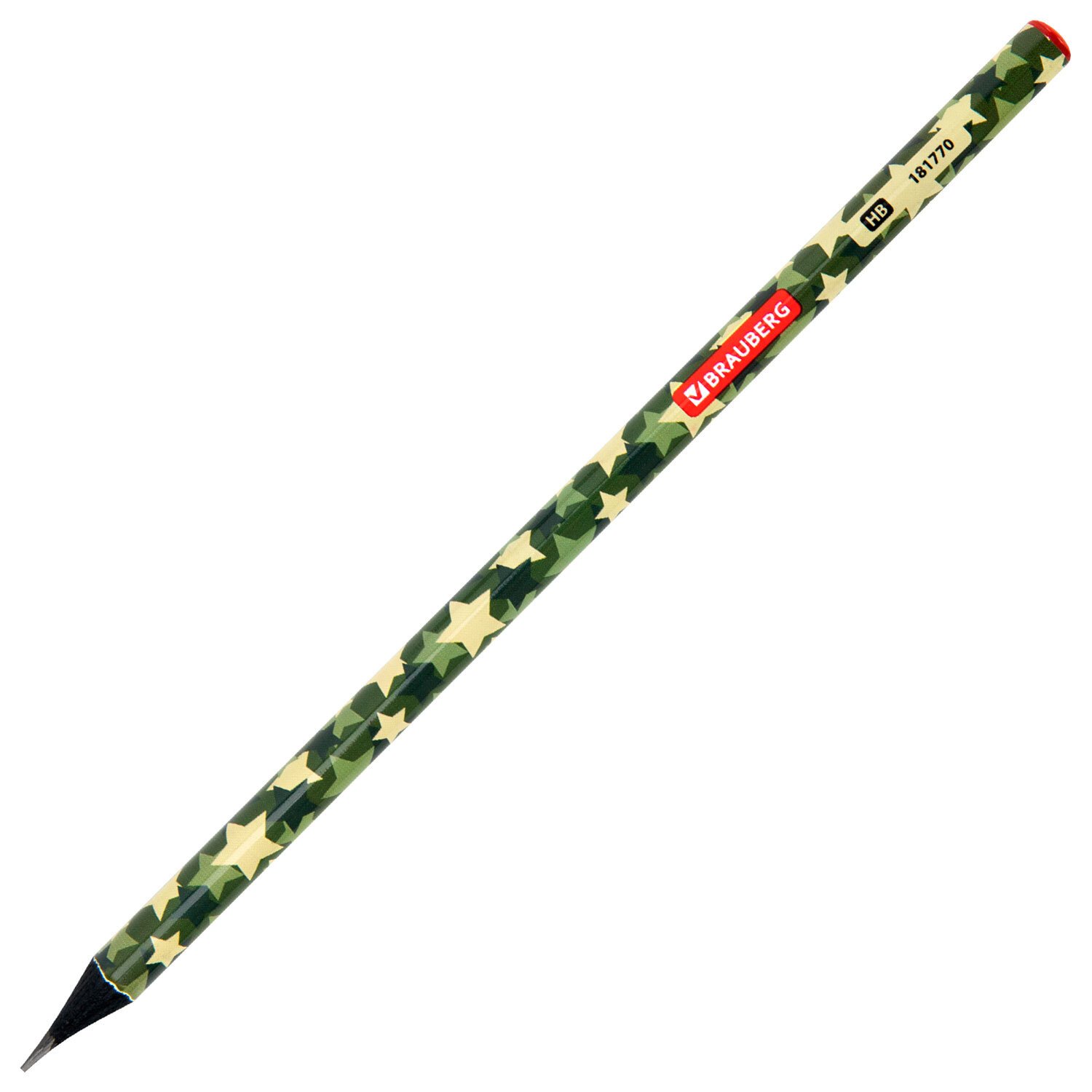 Карандаш чернографитный BRAUBERG "ARMY", 1 шт., HB, корпус ассорти, 181770