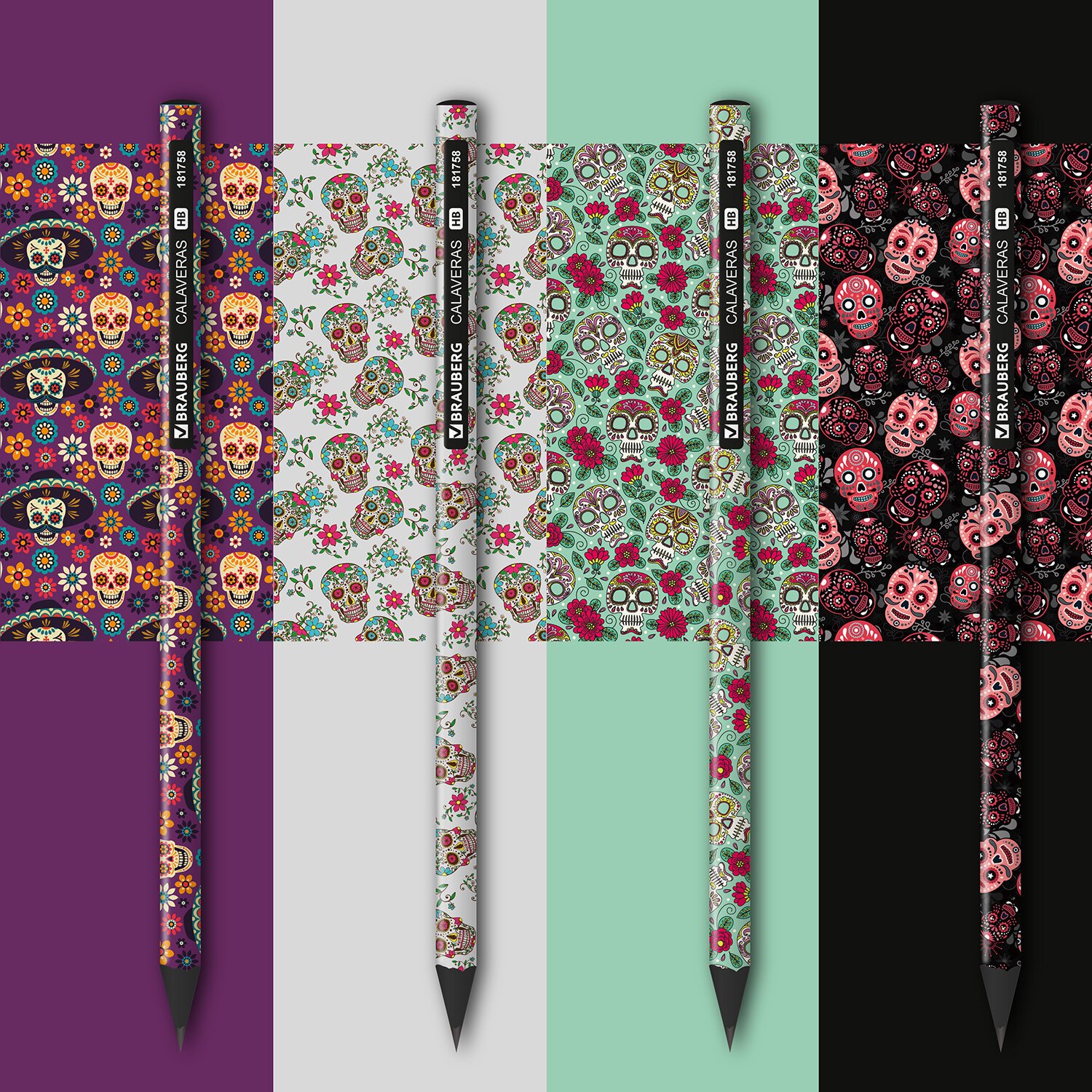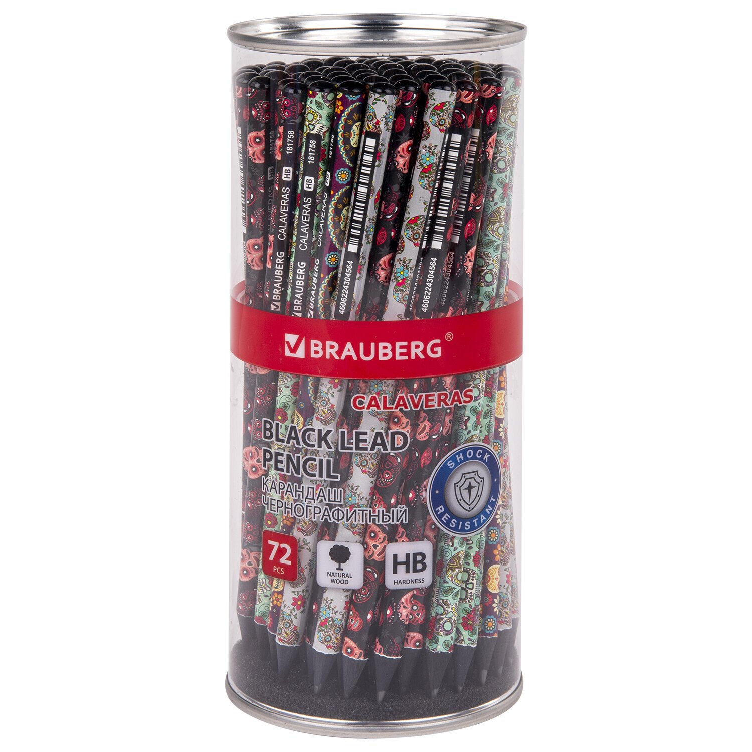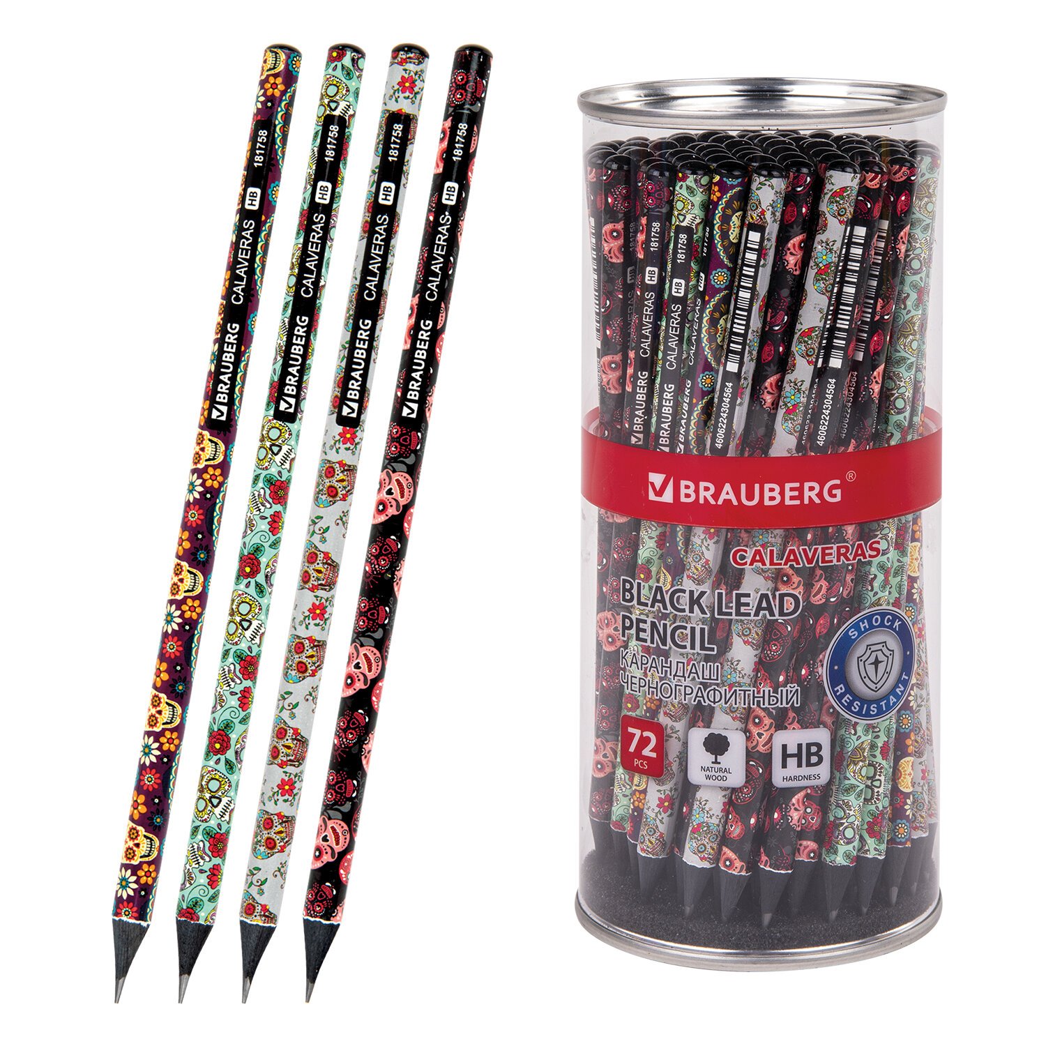 Карандаш чернографитный BRAUBERG "CALAVERAS", 1 шт., HB, корпус ассорти, 181758