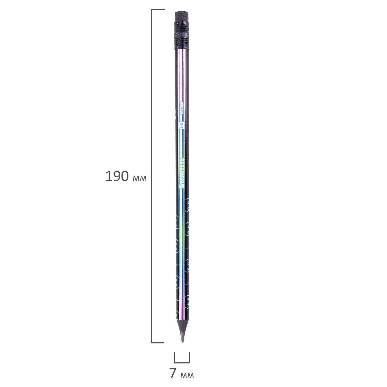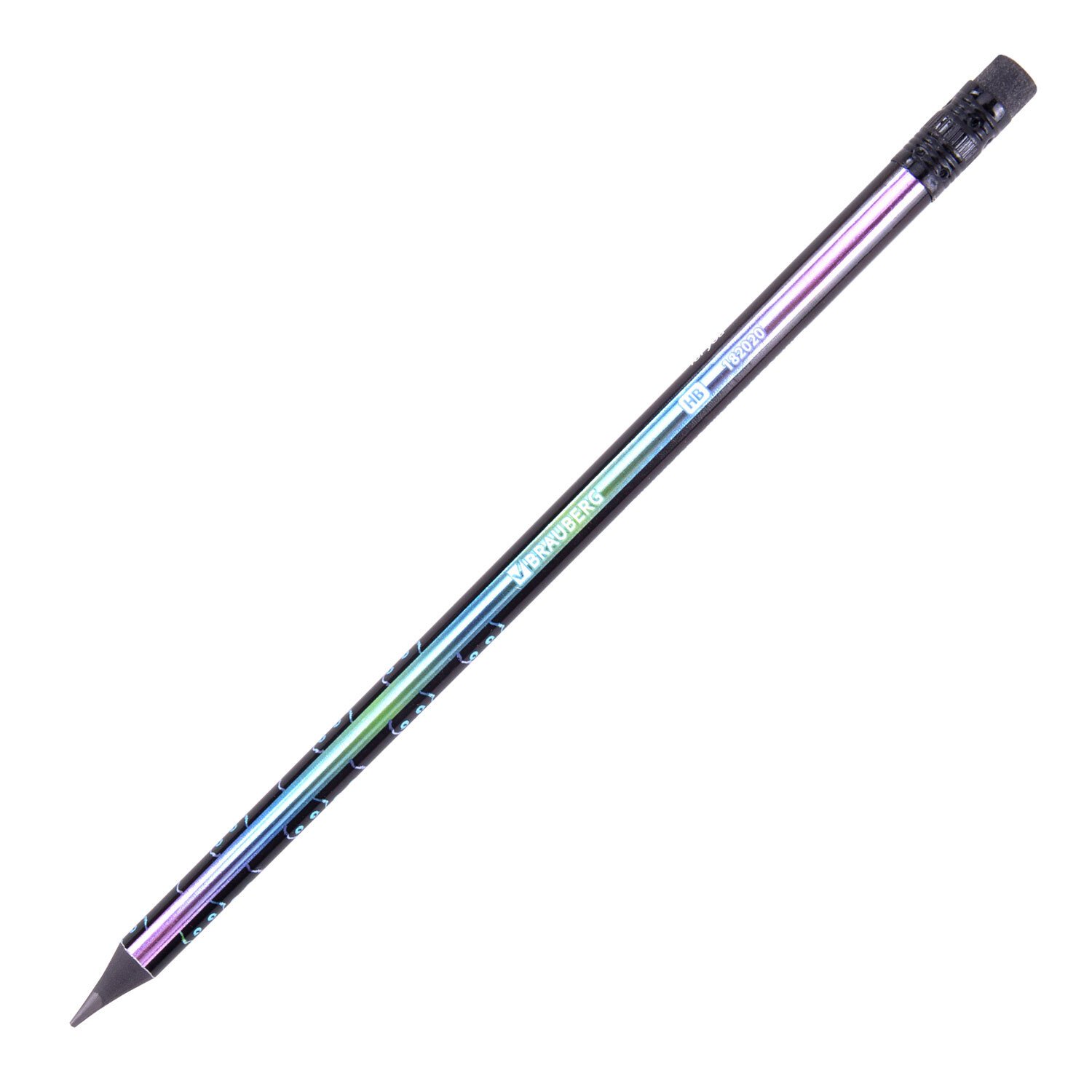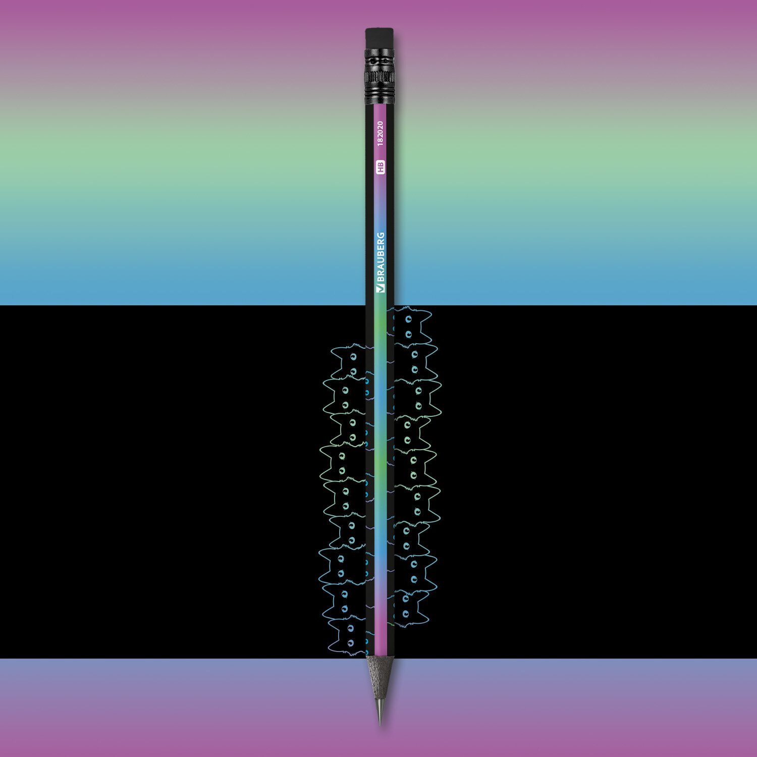 Карандаш чернографитный BRAUBERG "ONI", 1 шт, HB, с ластиком, корпус ассорти, 182023