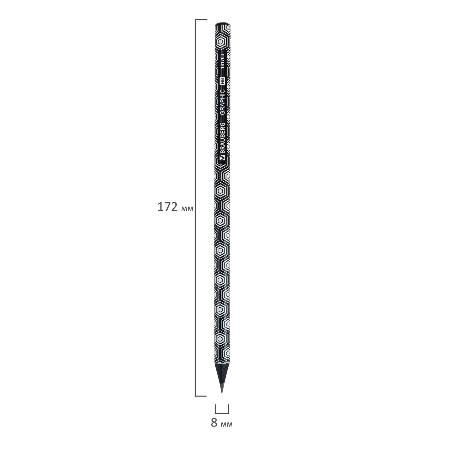 Карандаш чернографитный BRAUBERG "GRAPHIC", 1 шт., HB, корпус ассорти, 181763