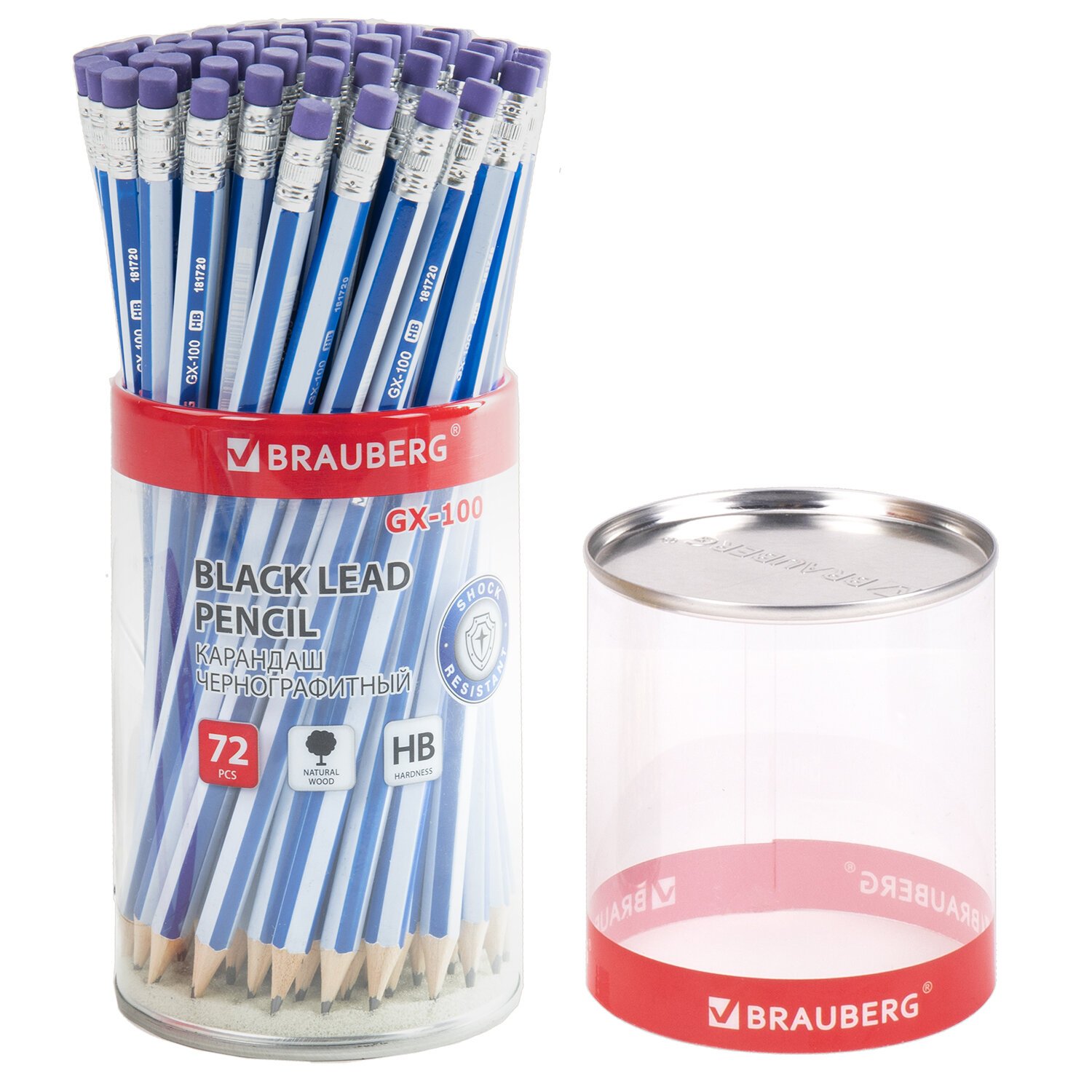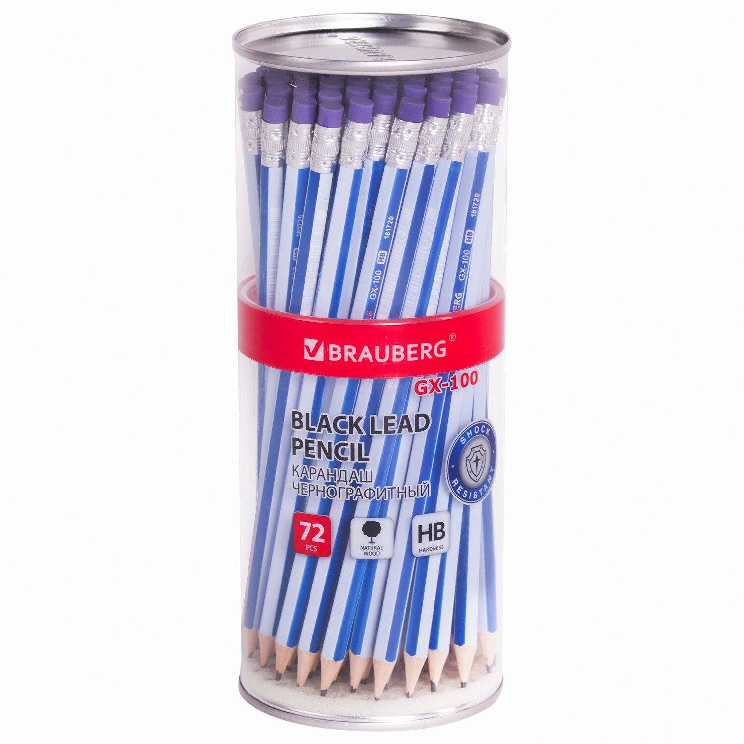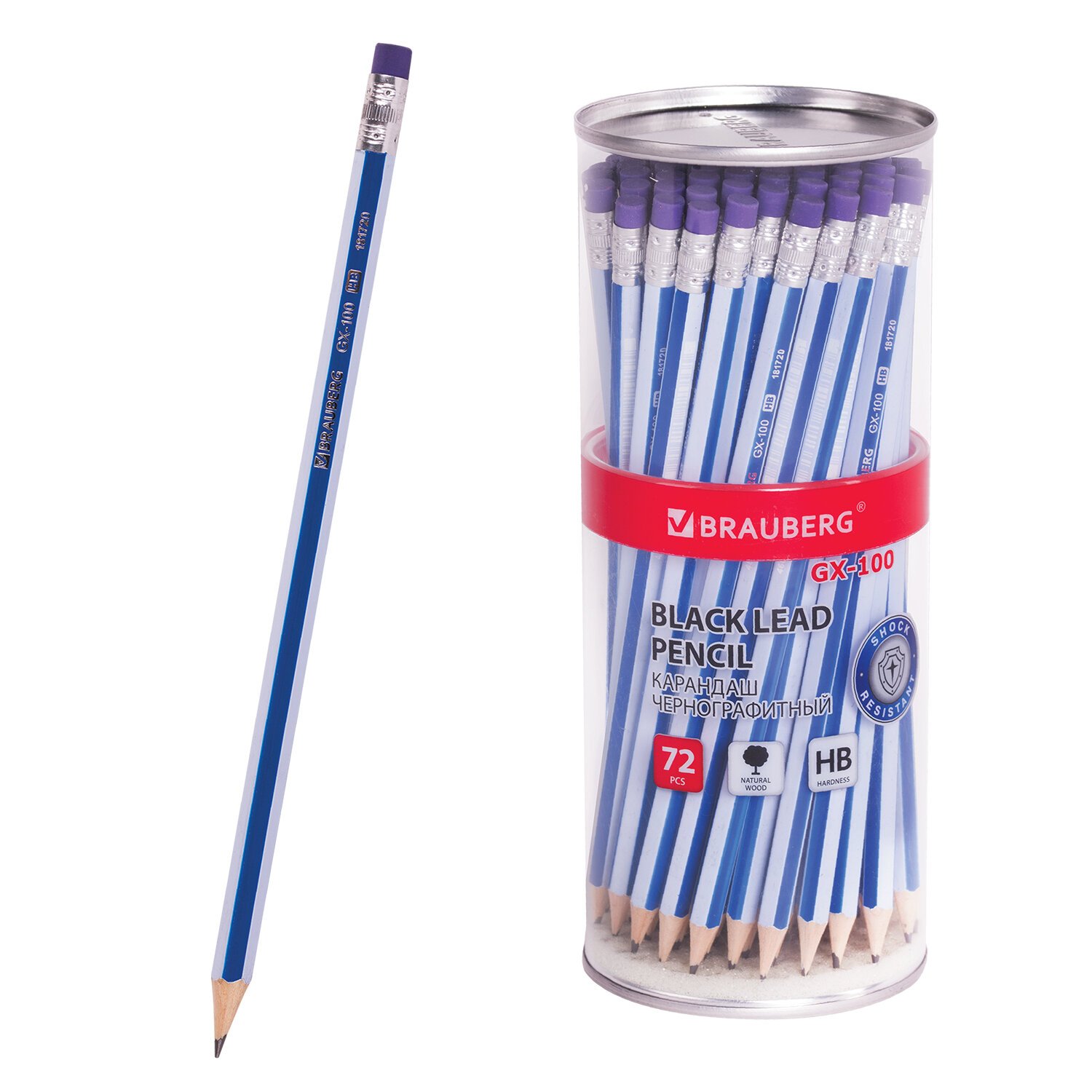 Карандаш чернографитный BRAUBERG "GX-100", 1 шт., HB, с ластиком, корпус синий, 181720