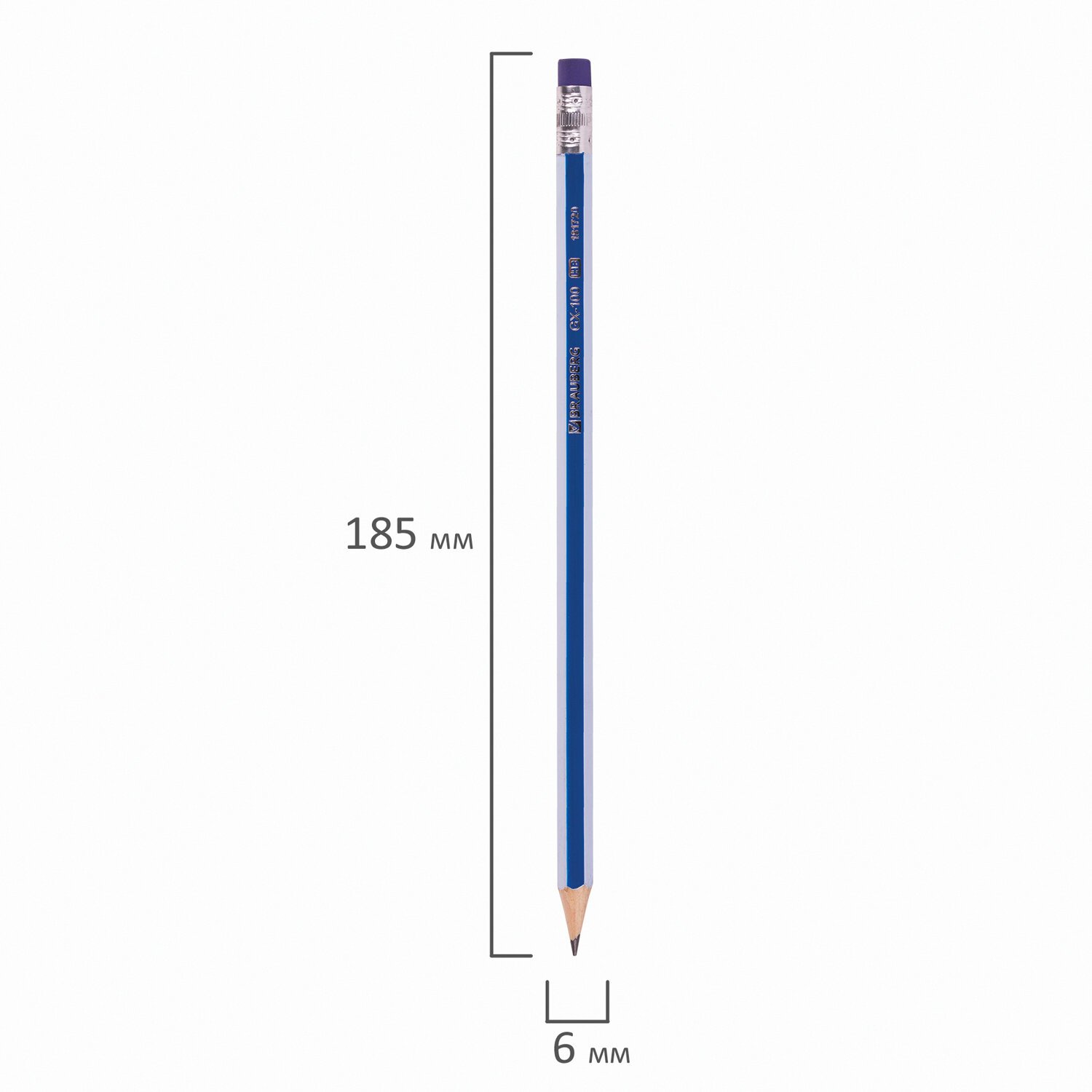 Каждый карандаш имеет индивидуальный штрих-код. Легко затачивается, максимально устойчив к повреждениям. Изготовлен из дерева высокого качества. Имеет шестигранное сечение и оснащен ластиком. Карандаш длиной 185 мм обладает средней степенью твердости – HB. Цвет корпуса - синий. Поставляется заточенным в пластиковой тубе по 72 штуки.