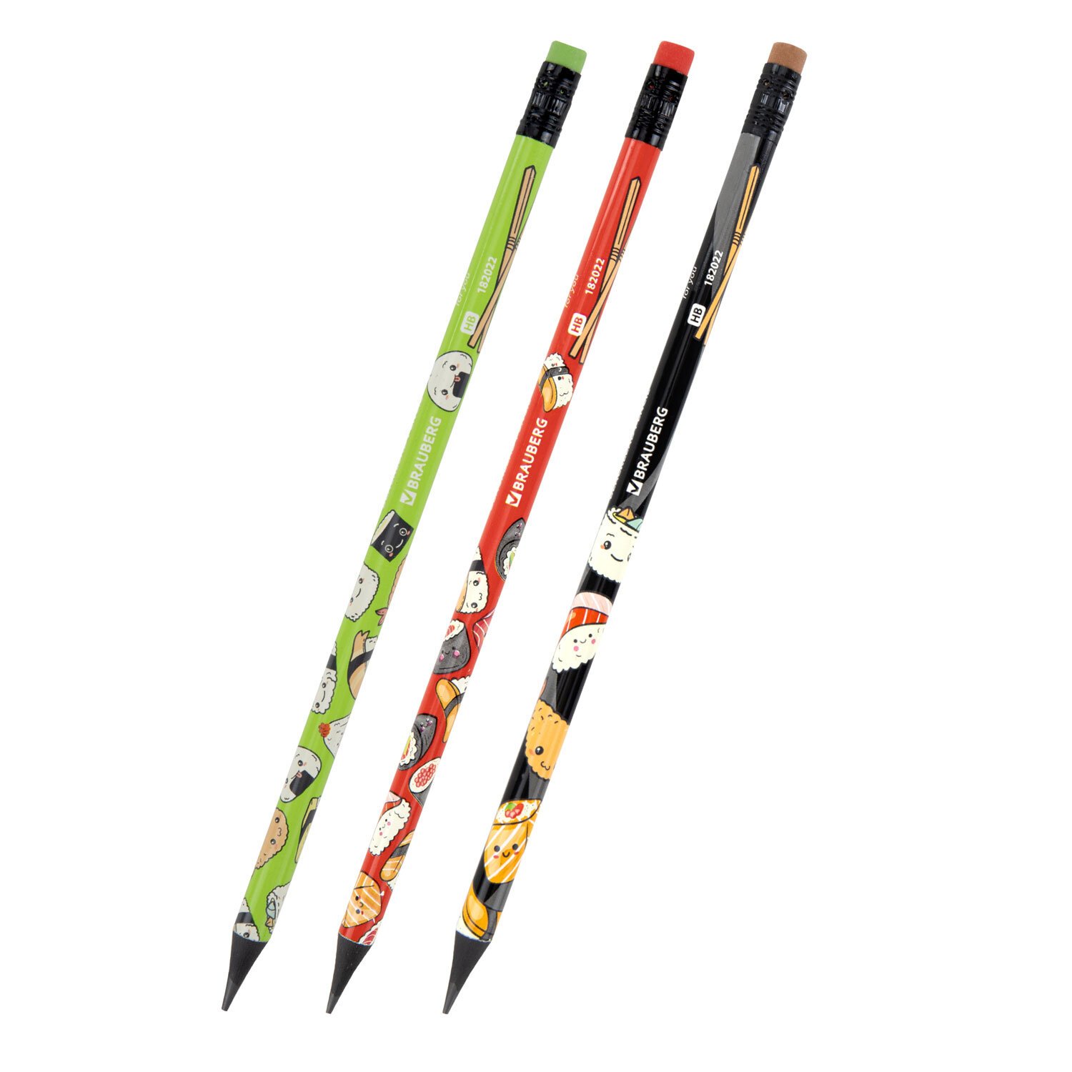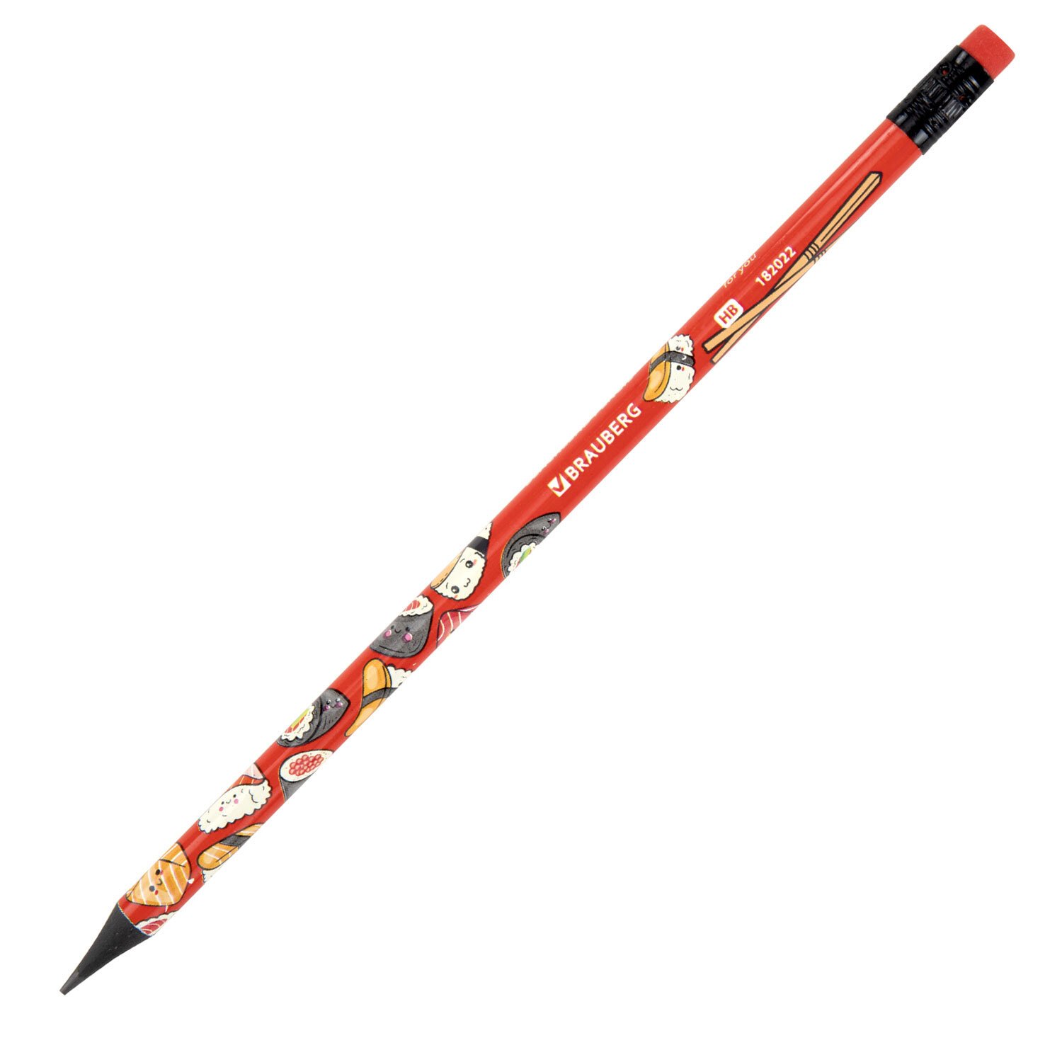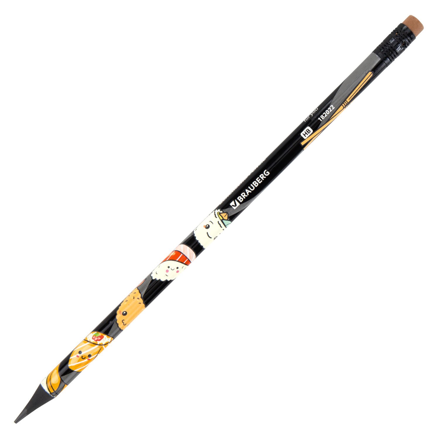 Карандаш чернографитный BRAUBERG "JAPAN FOOD", 1 шт, HB, с ластиком, корпус ассорти, 182022