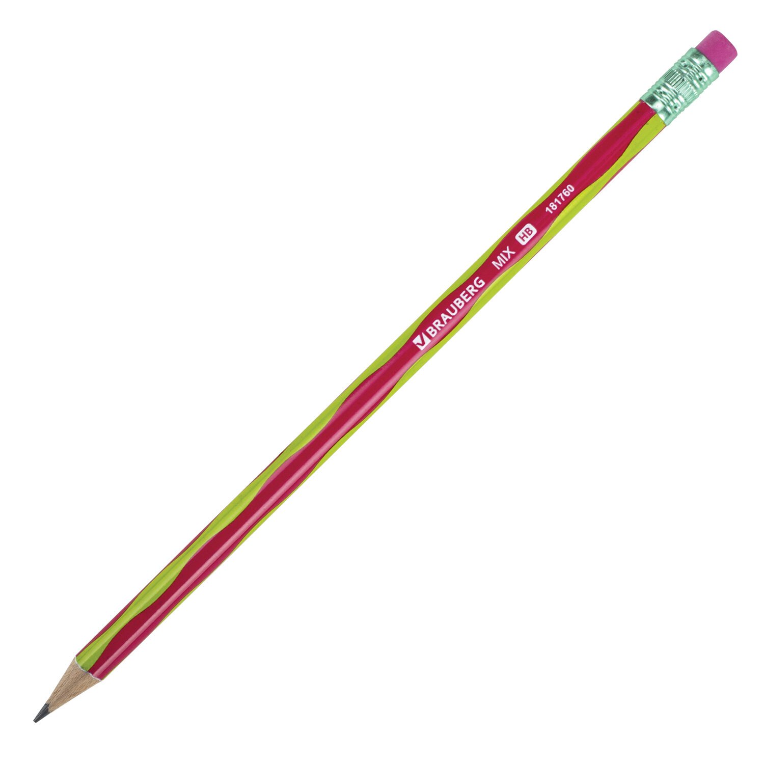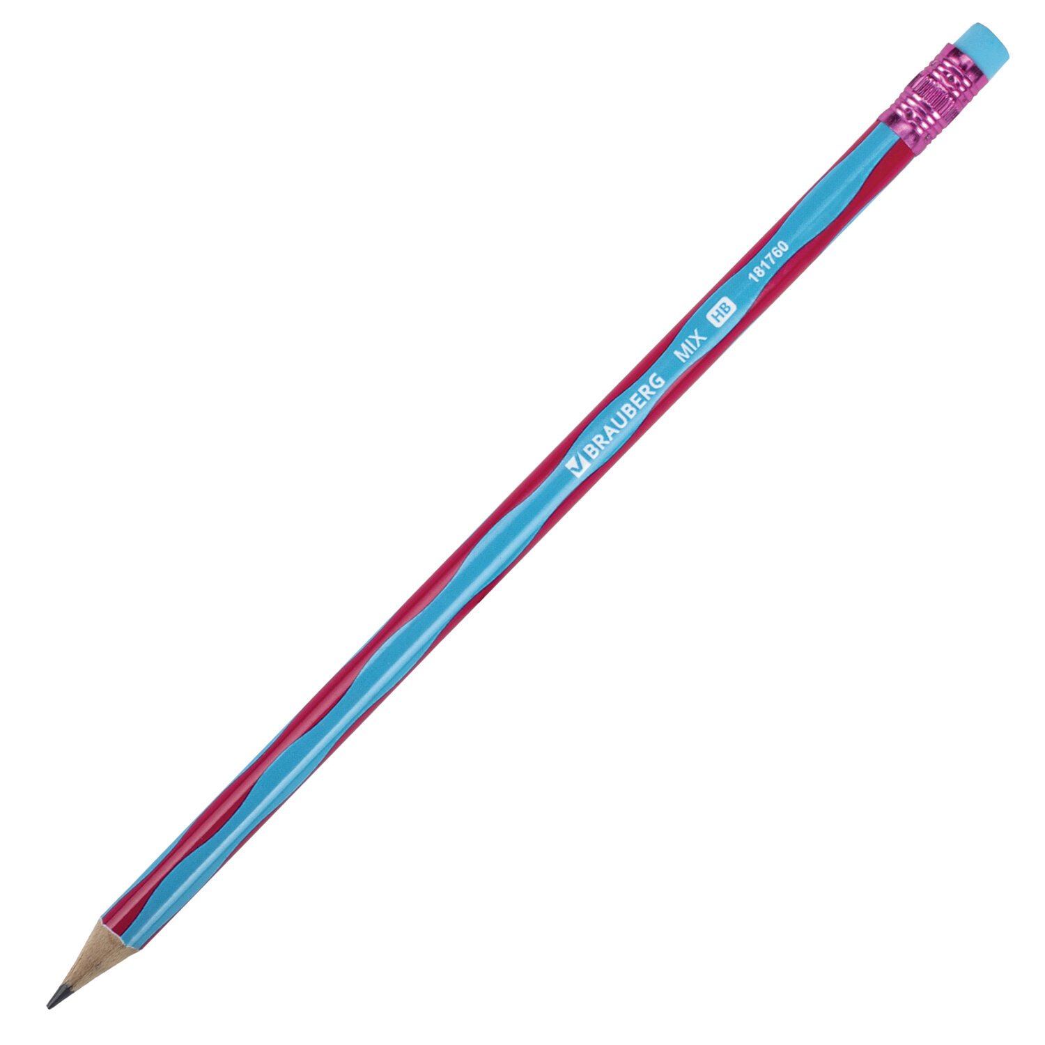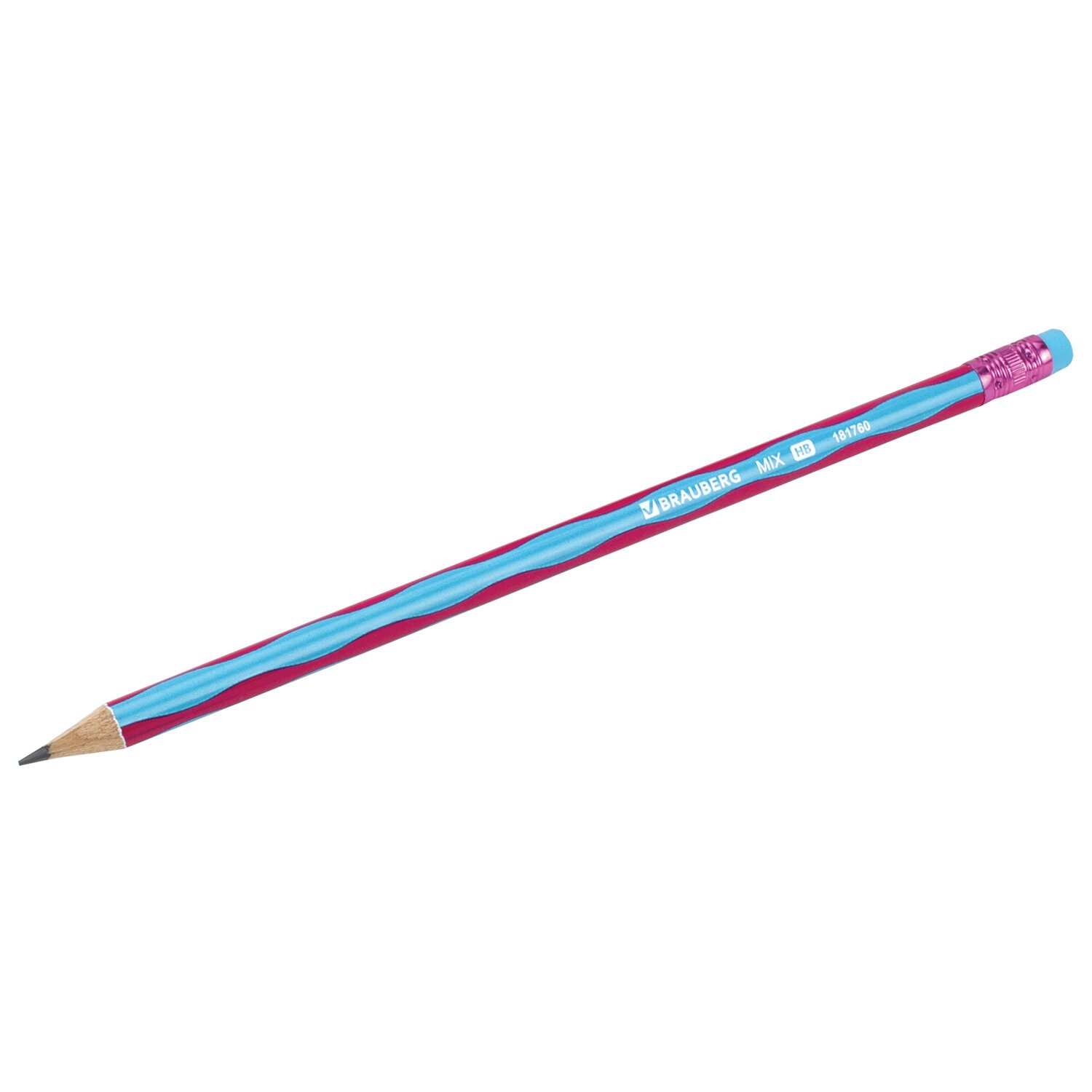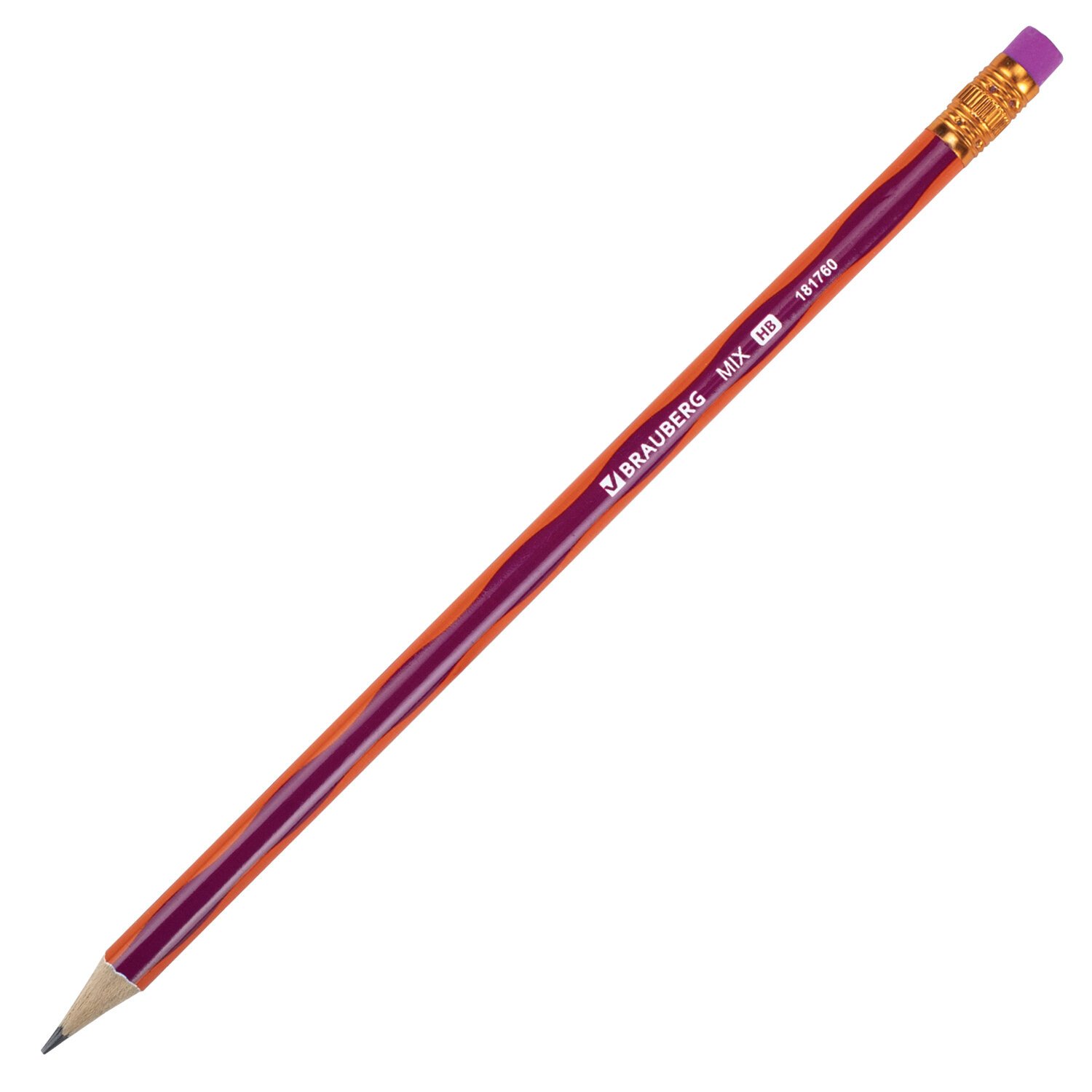 Карандаш чернографитный BRAUBERG "MIX", 1 шт., HB, с ластиком, корпус ассорти, 181760