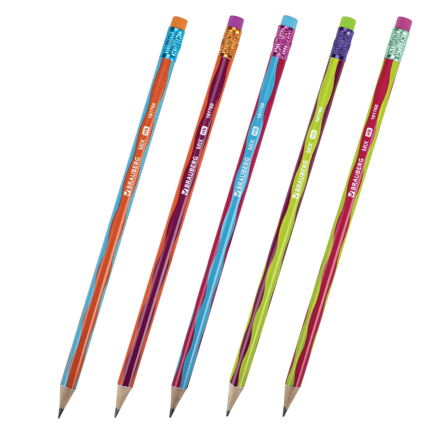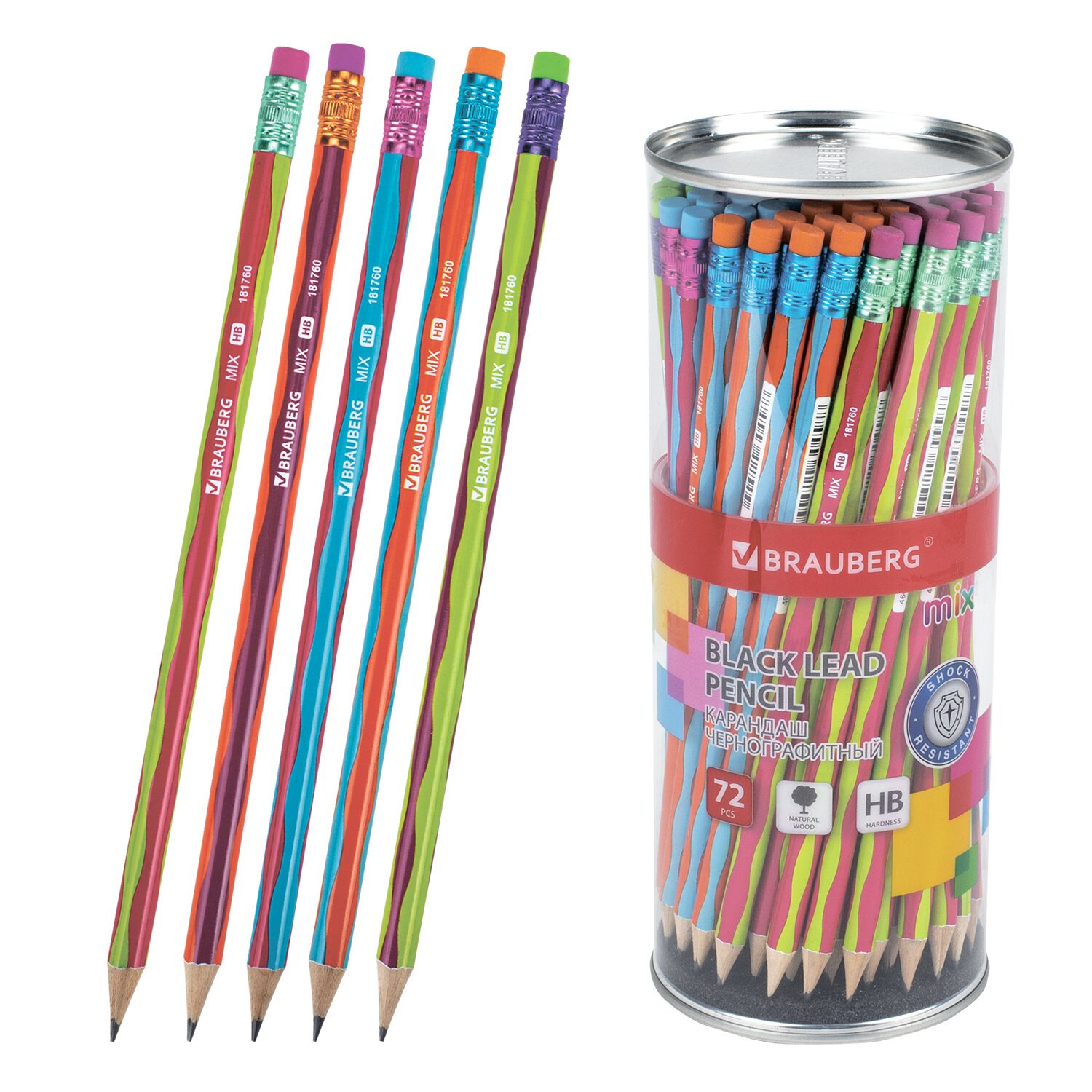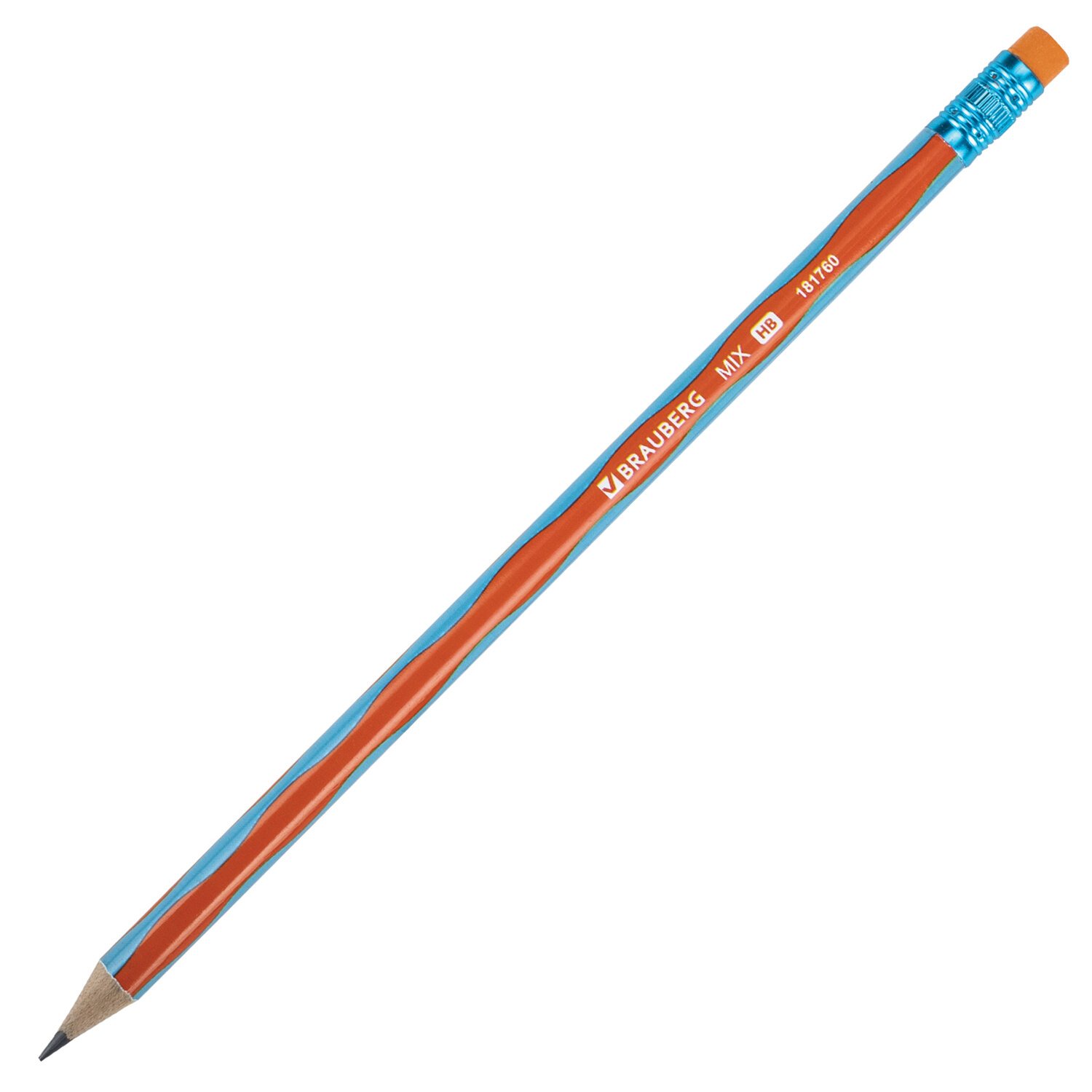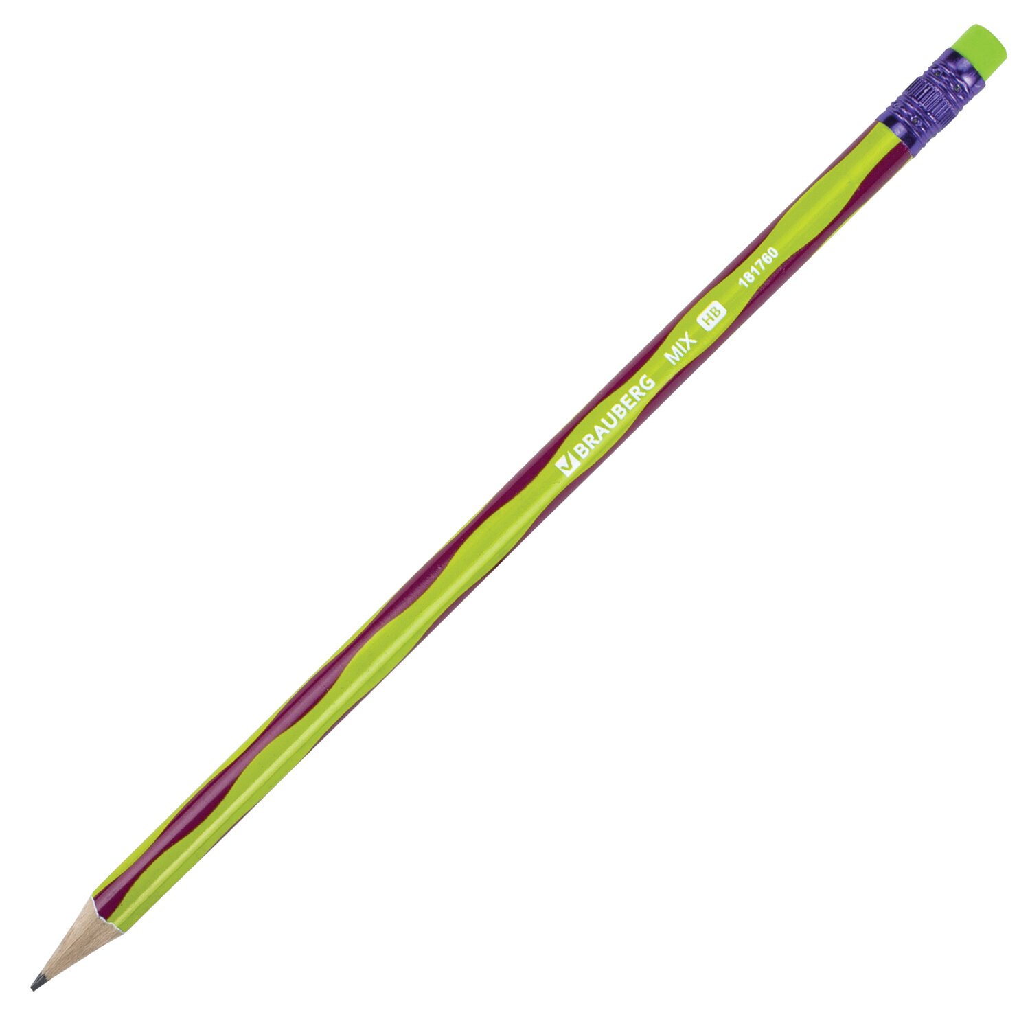 Карандаш чернографитный BRAUBERG "MIX", 1 шт., HB, с ластиком, корпус ассорти, 181760
