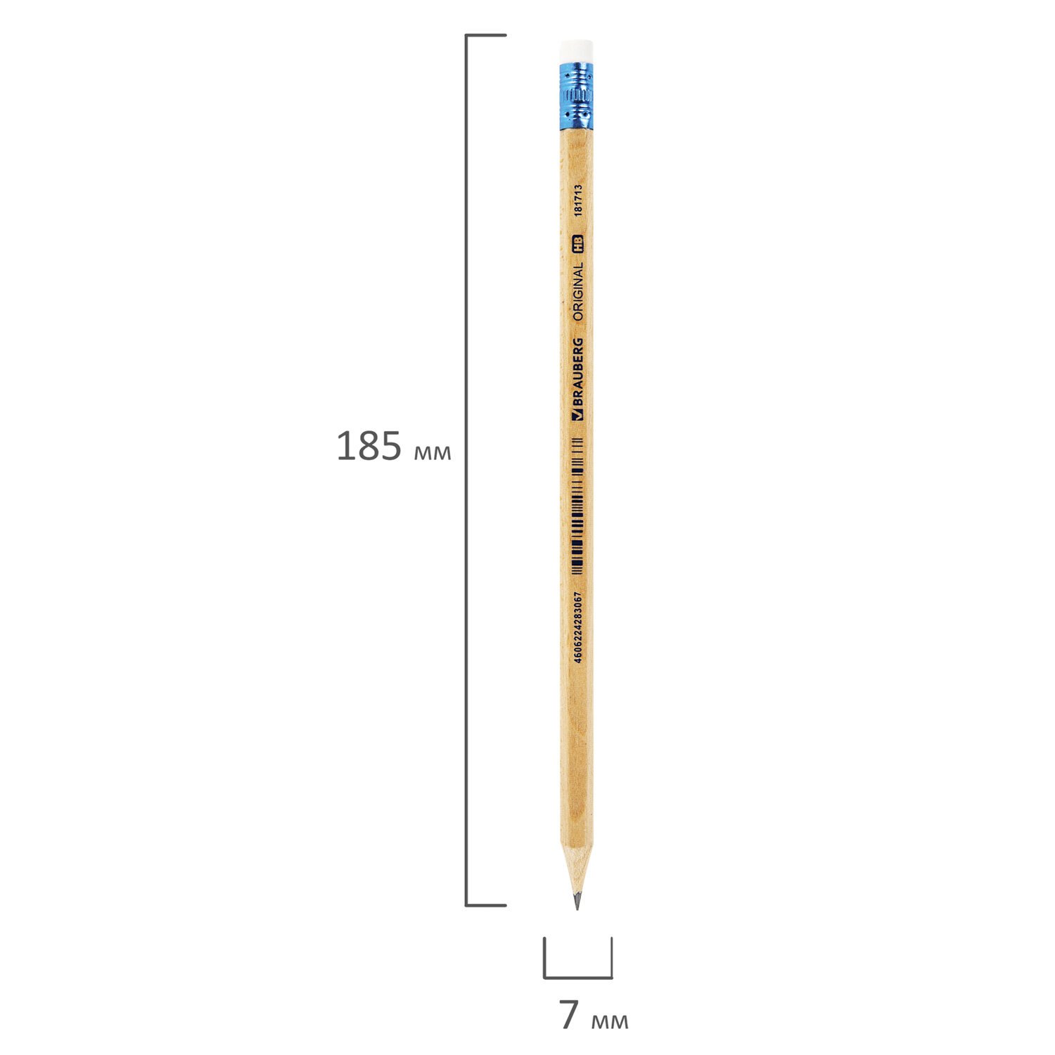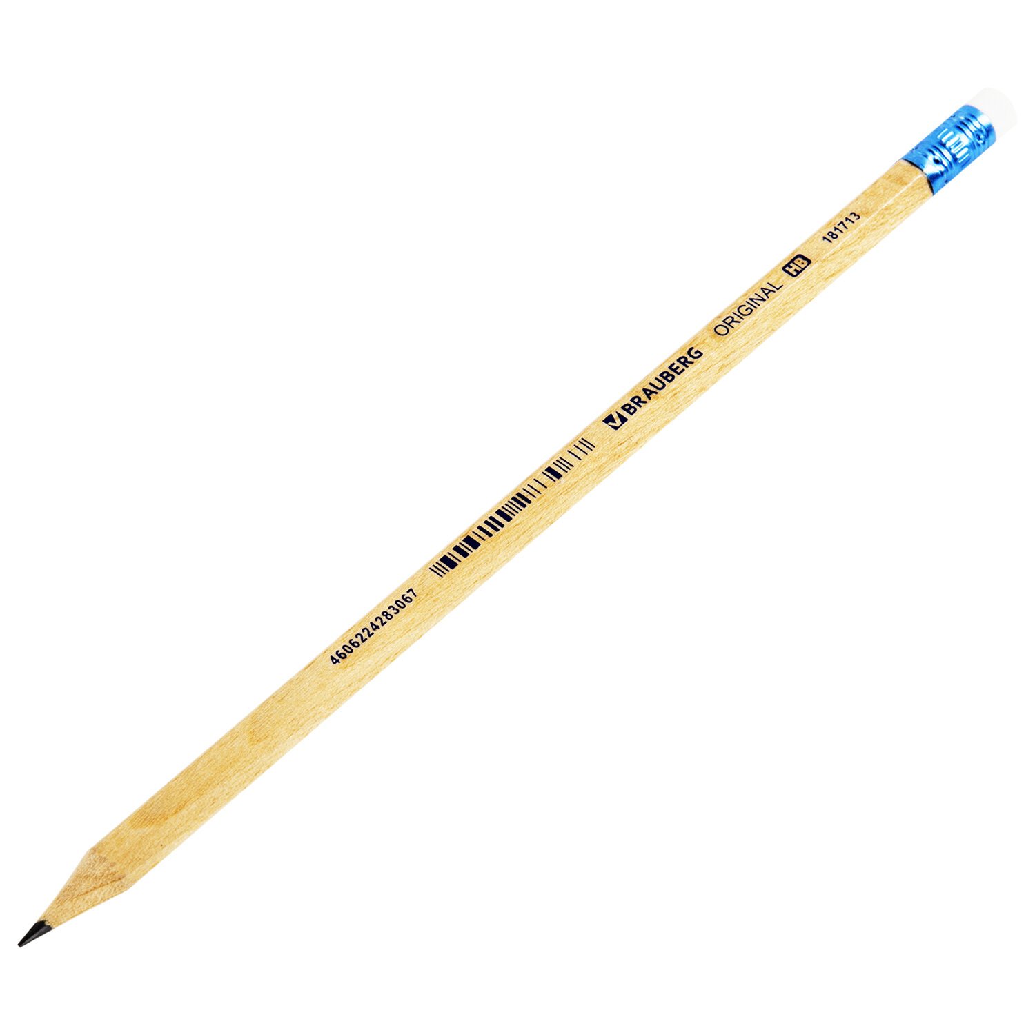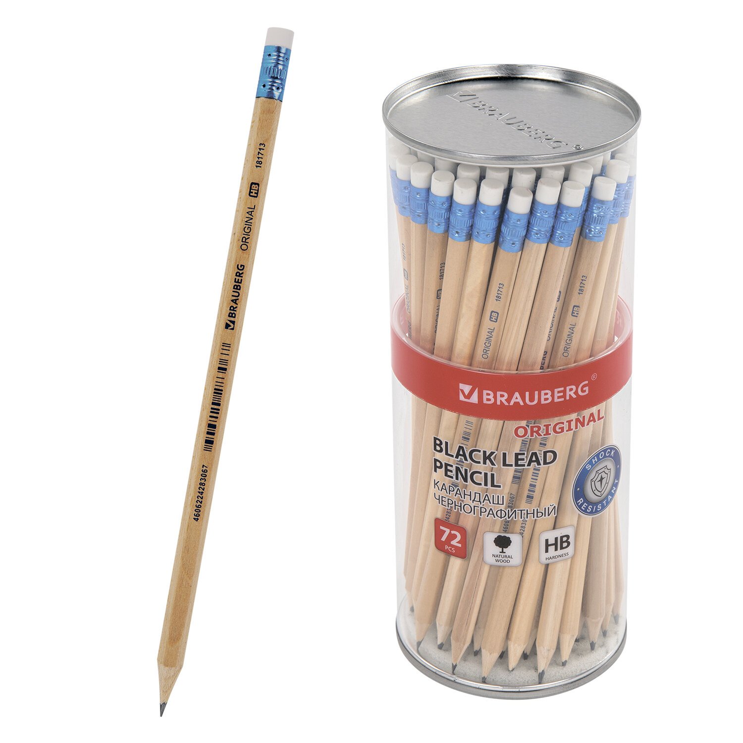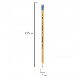 Карандаш чернографитный BRAUBERG "ORIGINAL", 1 шт., HB, с ластиком, некрашеный корпус, 181713