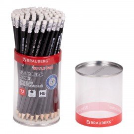 Карандаш чернографитный BRAUBERG "Style PRO", 1 шт., HB, с ластиком, корпус черный, 181723