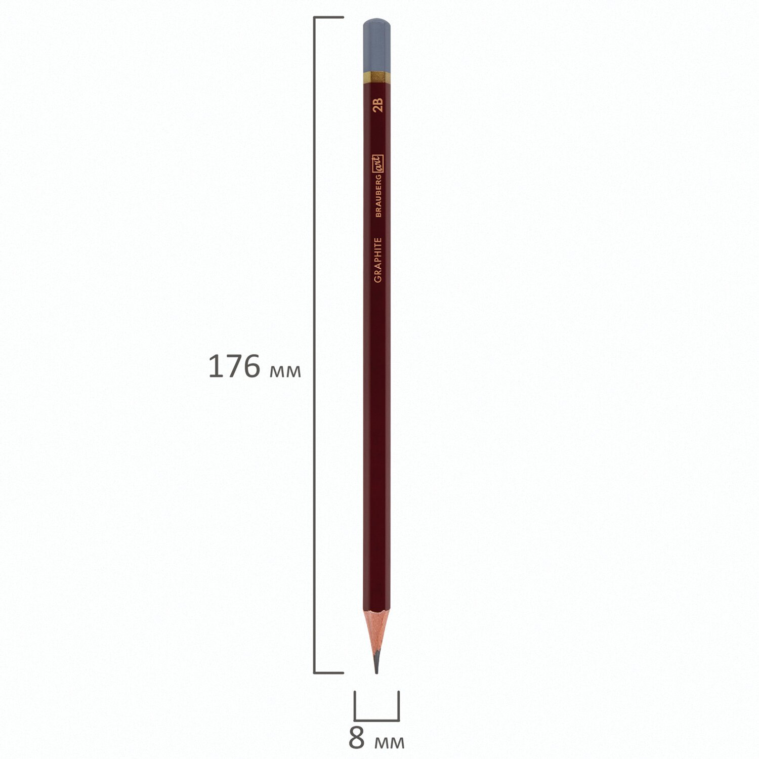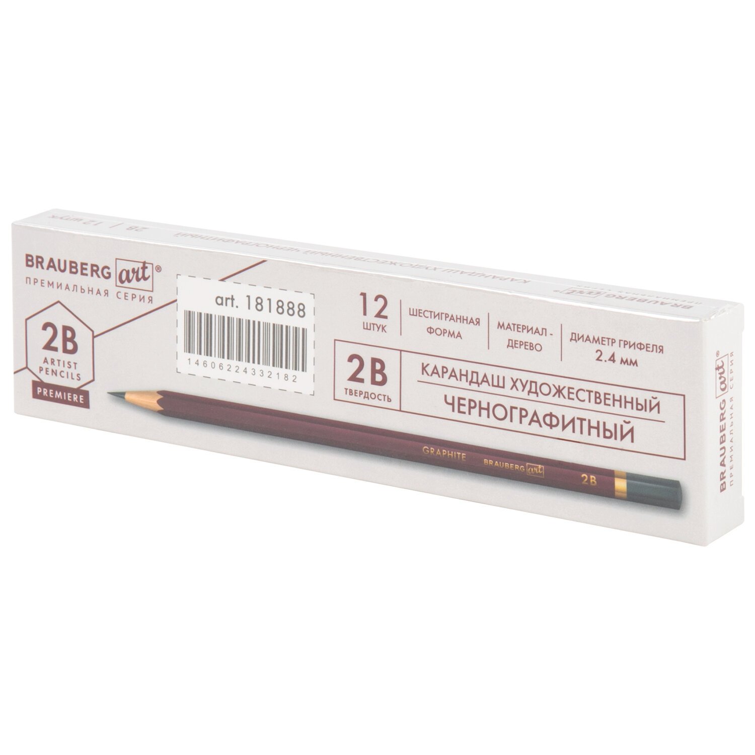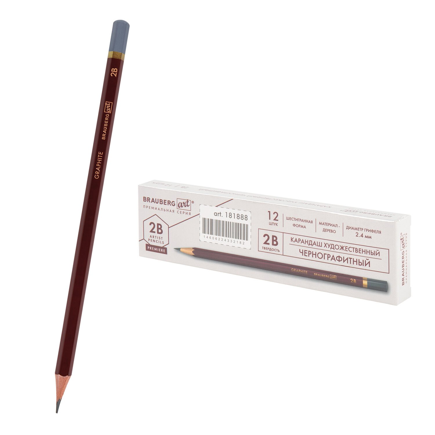 Карандаш чернографитный художественный 2B, 1 шт., BRAUBERG ART "PREMIERE", ВЫСШЕЕ КАЧЕСТВО, 181888