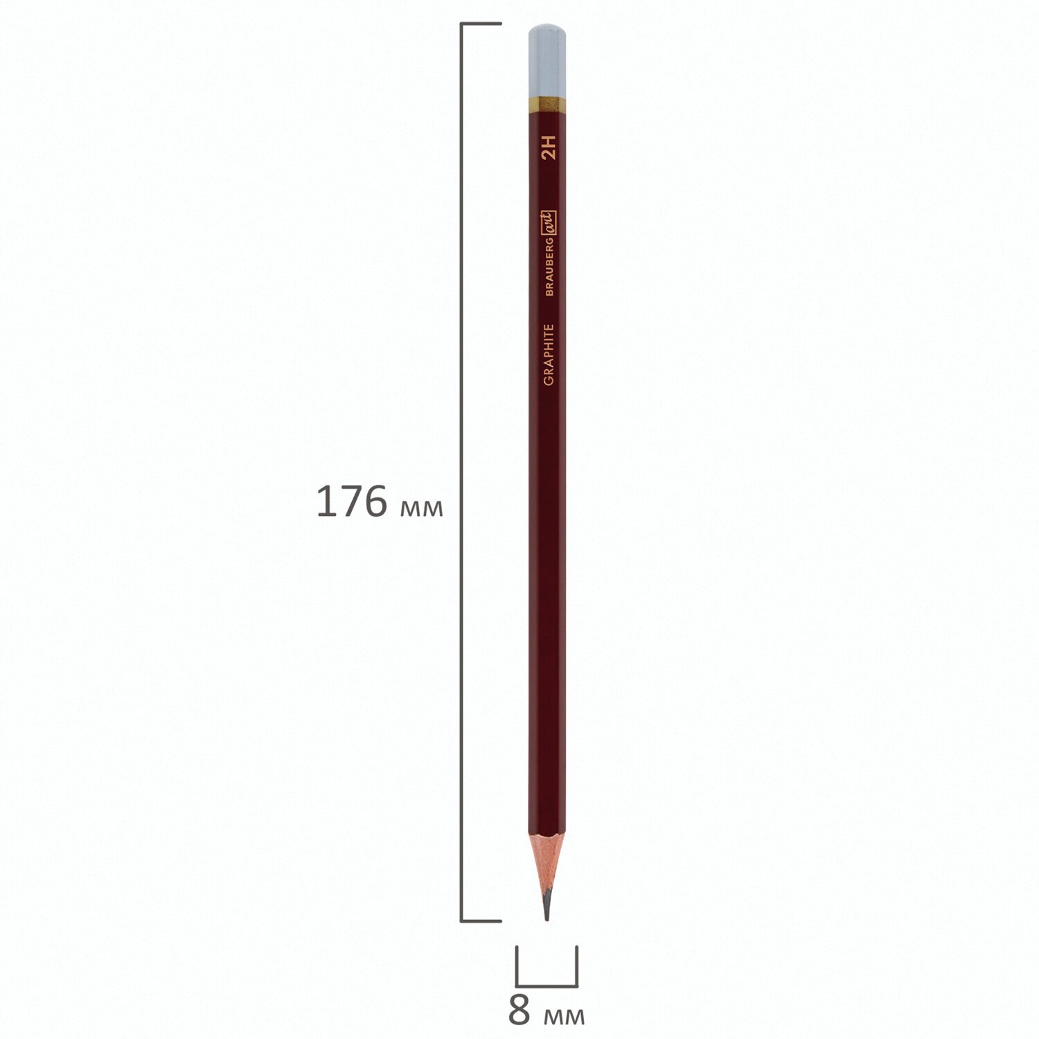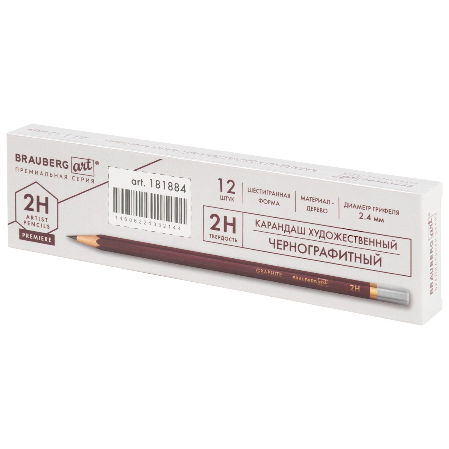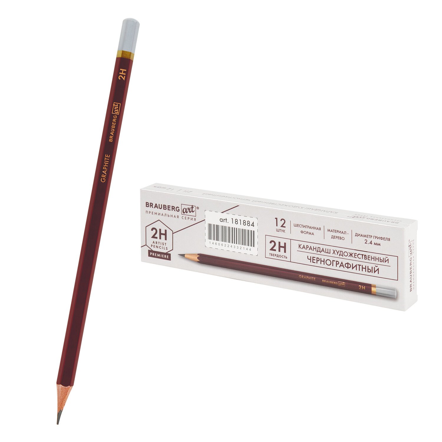 Карандаш чернографитный художественный 2H, 1 шт., BRAUBERG ART "PREMIERE", ВЫСШЕЕ КАЧЕСТВО, 181884
