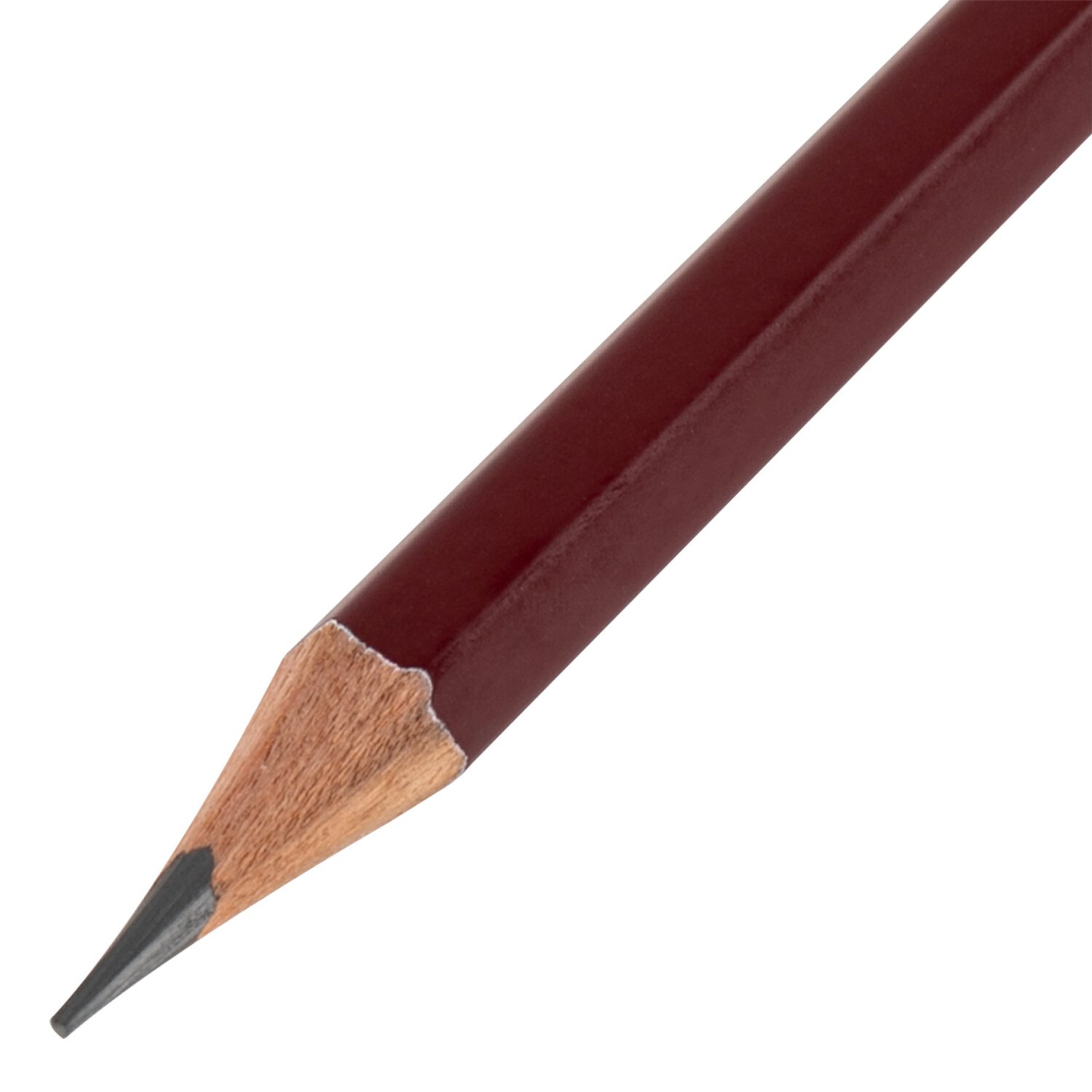 Карандаш легко затачивается, максимально устойчив к повреждениям. Изготовлен из дерева высокого качества. Имеет шестигранное сечение. Карандаш длиной 176 мм обладает степенью твердости – 2H. Цвет корпуса - бордовый. Диаметр грифеля- 2,4 мм. Поставляется заточенным.