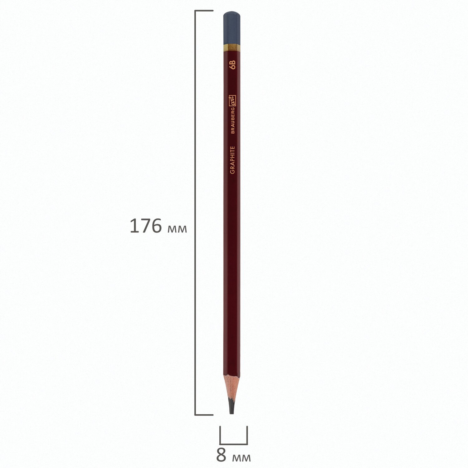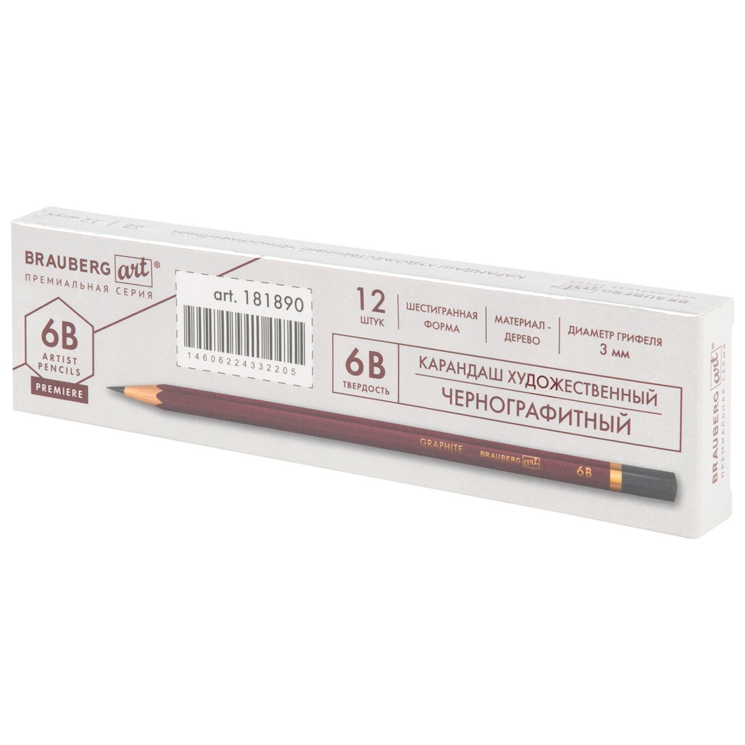 Карандаш чернографитный художественный 6B, 1 шт., BRAUBERG ART "PREMIERE", ВЫСШЕЕ КАЧЕСТВО, 181890