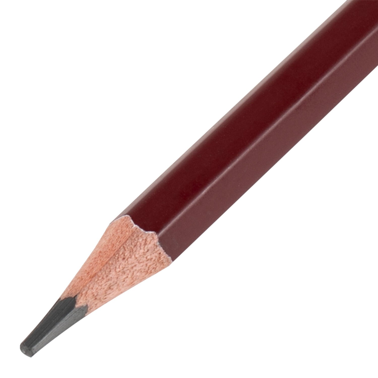 Карандаш легко затачивается, максимально устойчив к повреждениям. Изготовлен из дерева высокого качества. Имеет шестигранное сечение. Карандаш длиной 176 мм обладает степенью твердости – 6B. Цвет корпуса - бордовый. Диаметр грифеля- 3 мм. Поставляется заточенным.