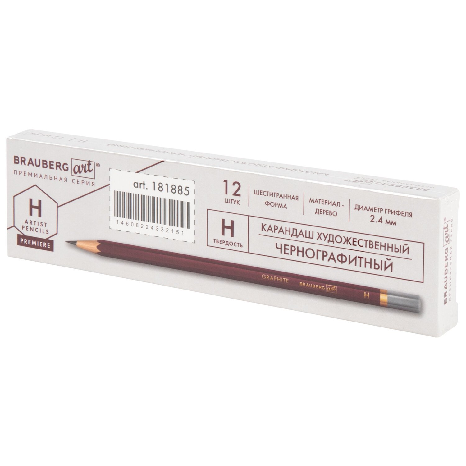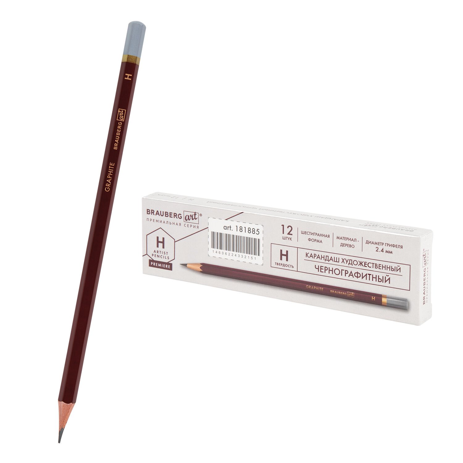 Карандаш чернографитный художественный H, 1 шт., BRAUBERG ART "PREMIERE", ВЫСШЕЕ КАЧЕСТВО, 181885