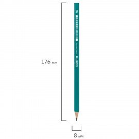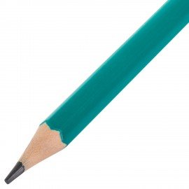 Карандаш изготовлен из прочного пластика. Благодаря шестигранному сечению корпуса карандаш удобен в работе и менее подвержен скатыванию с поверхности стола. Корпус длиной 176 мм легко точится и не крошится, оставляя равномерную стружку. Грифель карандаша обладает средней степенью твердости – HB. Корпус выкрашен в классический зелёный цвет. Поставляется заточенным.