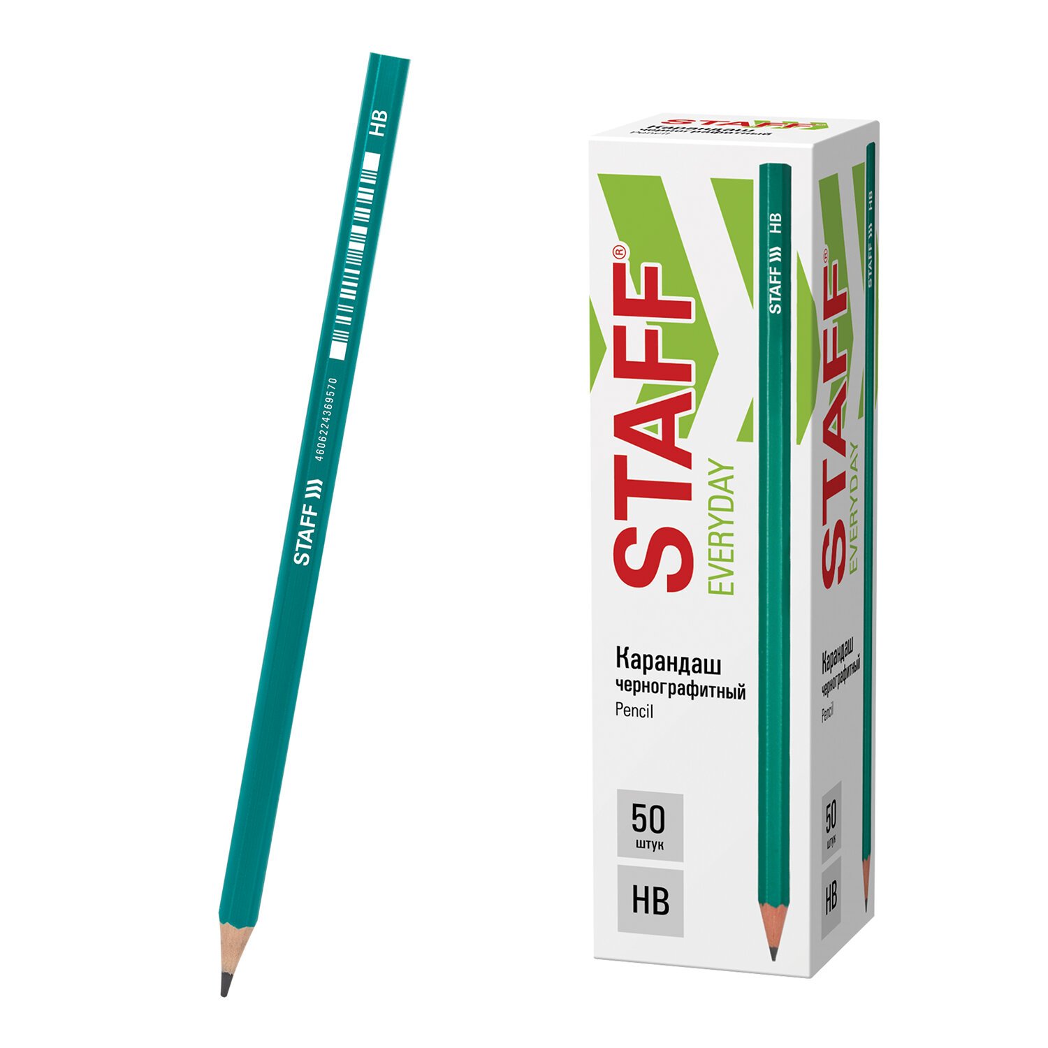 Карандаш чернографитный STAFF "EVERYDAY" BLP-963, 1 шт., НВ, пластиковый, зеленый корпус, 180962