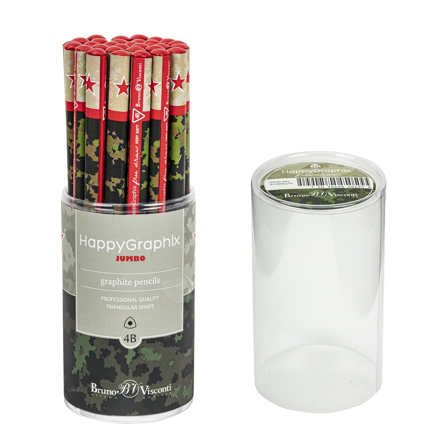 Карандаш чернографитный утолщенный BRUNO VISCONTI "HappyGraphix Jumbo", "Милитари. Звезда", 4В, 21-0062/11