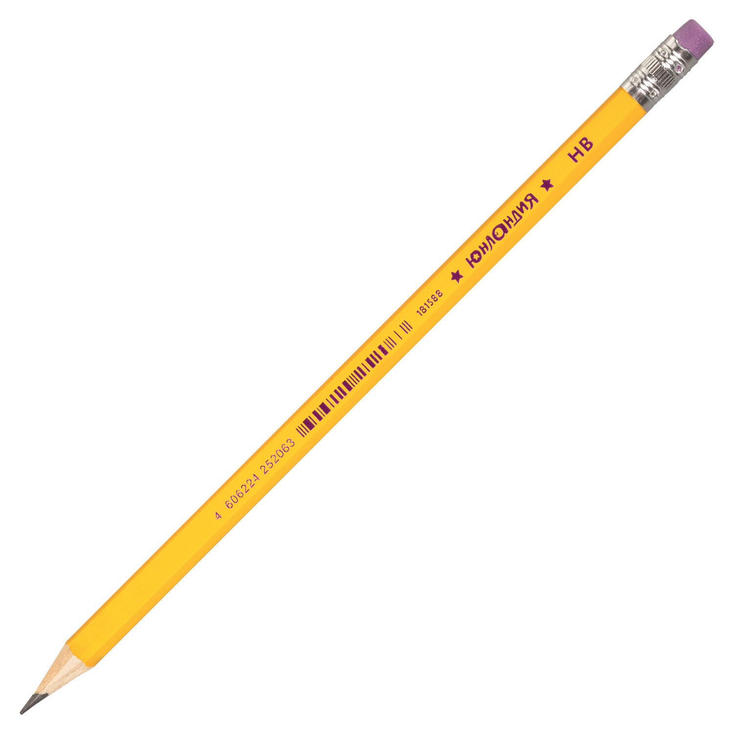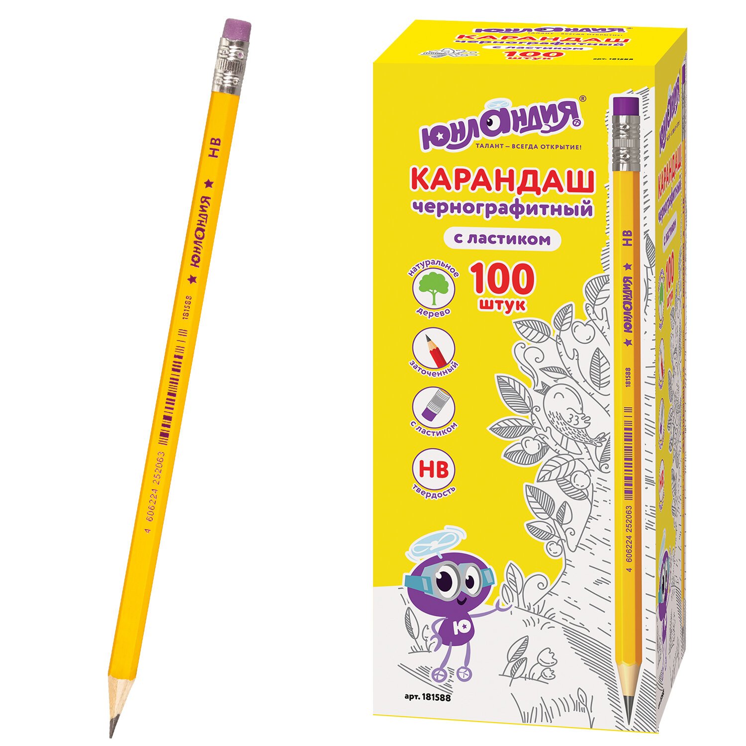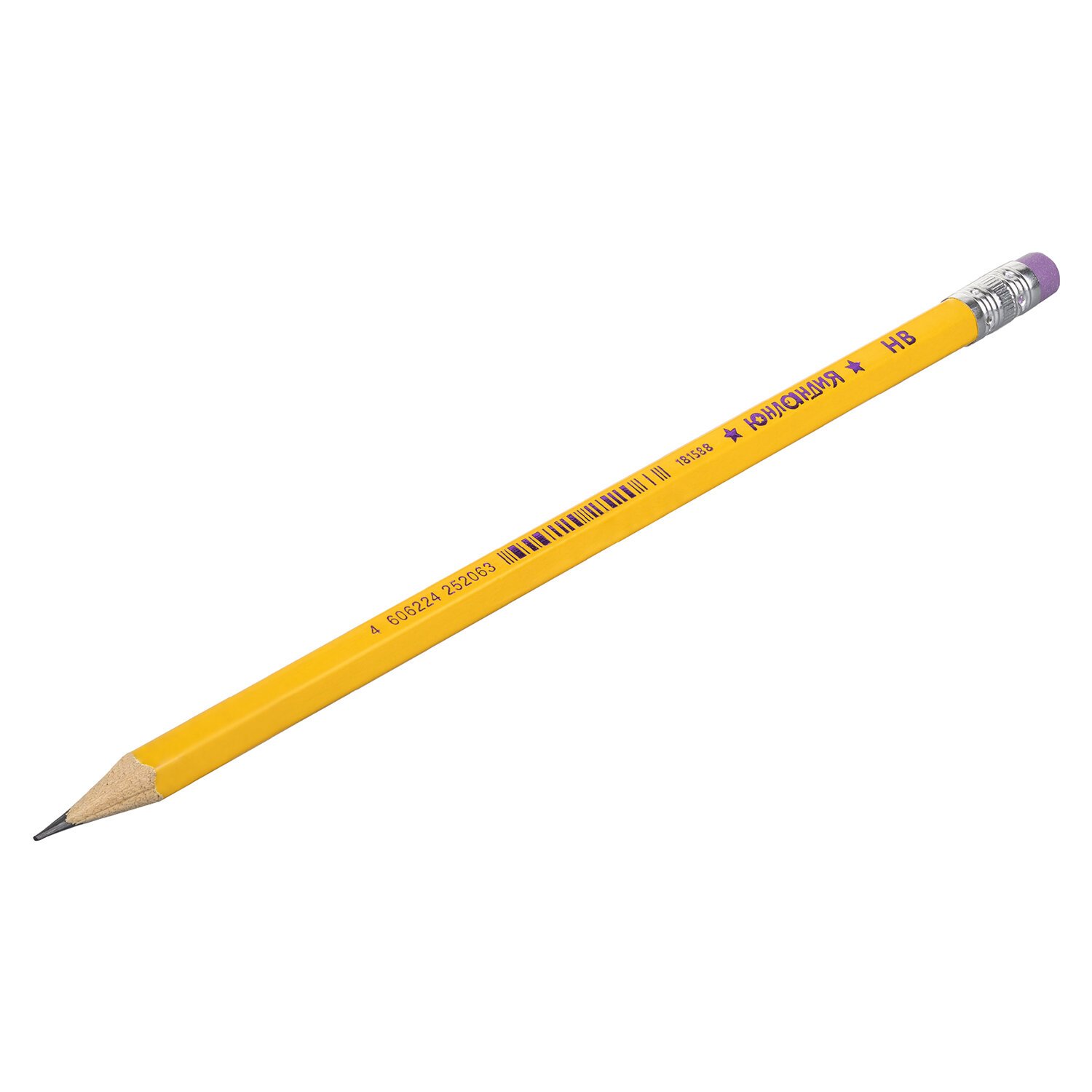 Карандаш чернографитный ЮНЛАНДИЯ, 1 шт., "Школьный", НВ, корпус желтый, с резинкой, 181588