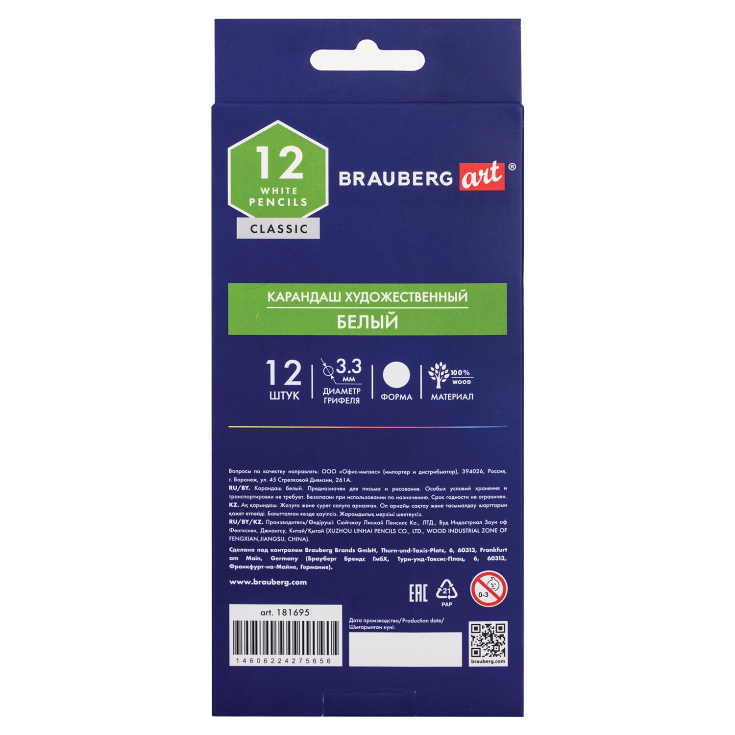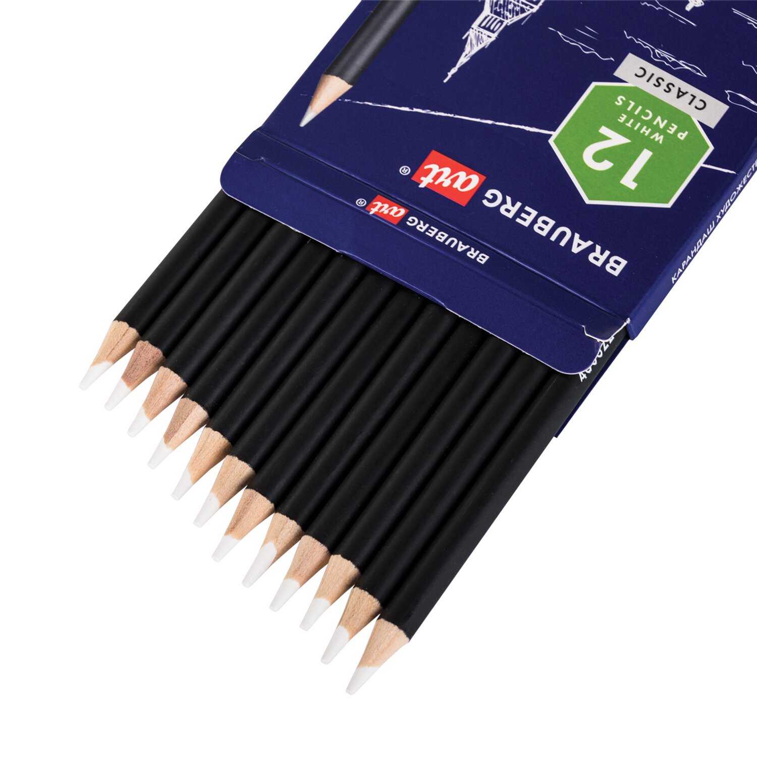 Карандаши художественные белые, НАБОР 12 шт. BRAUBERG ART CLASSIC, МЯГКИЙ грифель 3,3 мм, 181896