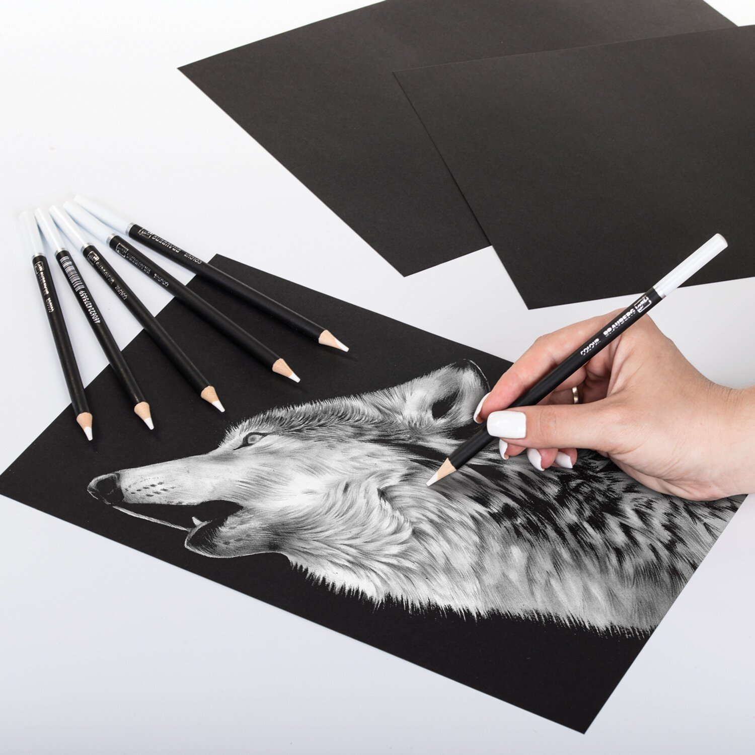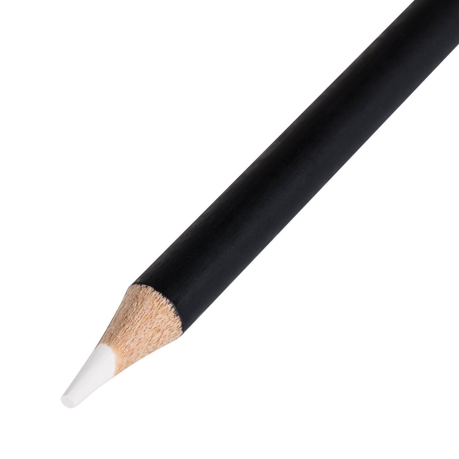 Карандаш белого цвета изготовлен из дерева высокого качества. Имеет круглое сечение и матовый корпус. Обладает длиной 175 мм, легко точится и не крошится. Мягкий грифель. Диаметр грифеля - 3,3 мм. Поставляется заточенным.