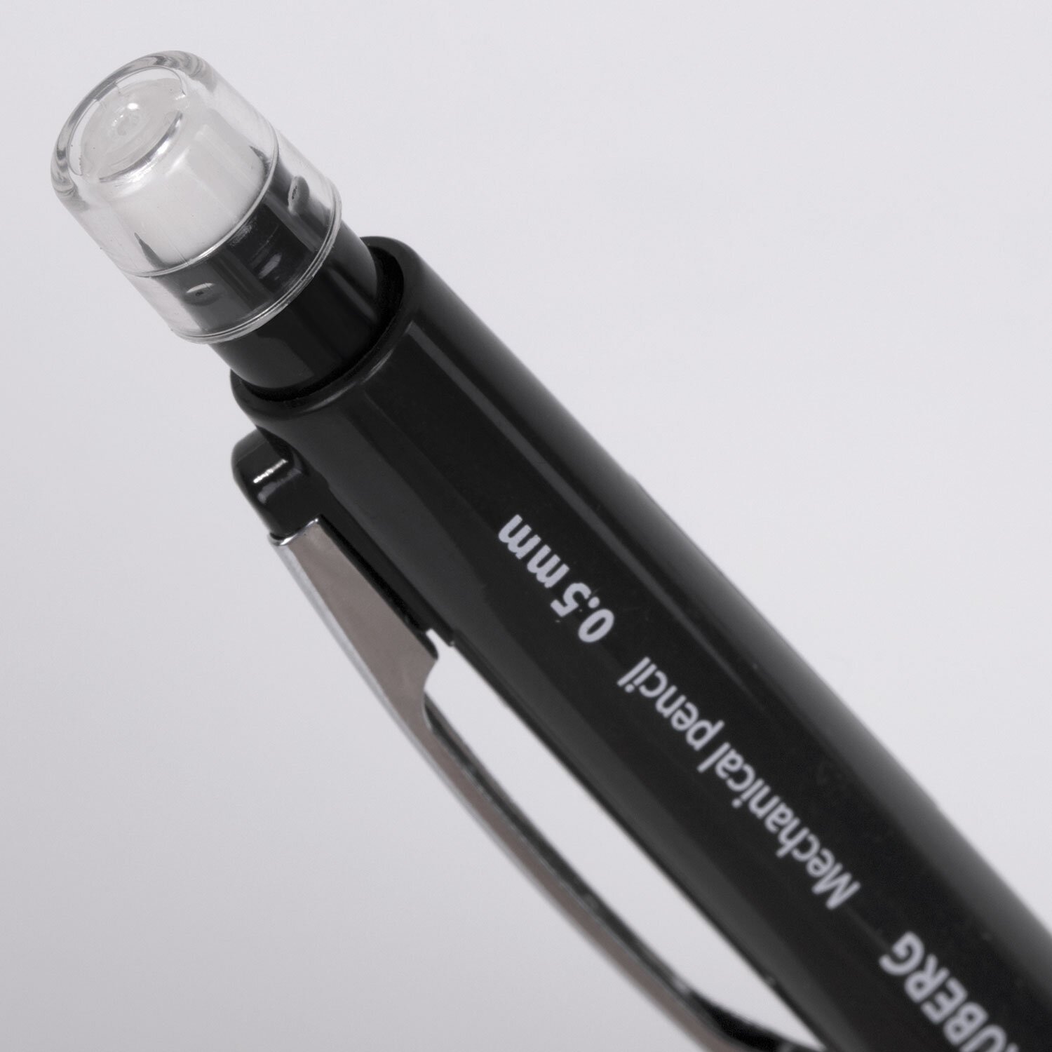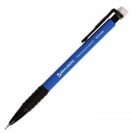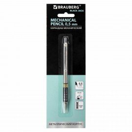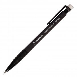 Механический карандаш BRAUBERG с корпусом черного цвета и и удобным резиновым упором, исключающим скольжение пальцев во время письма.
