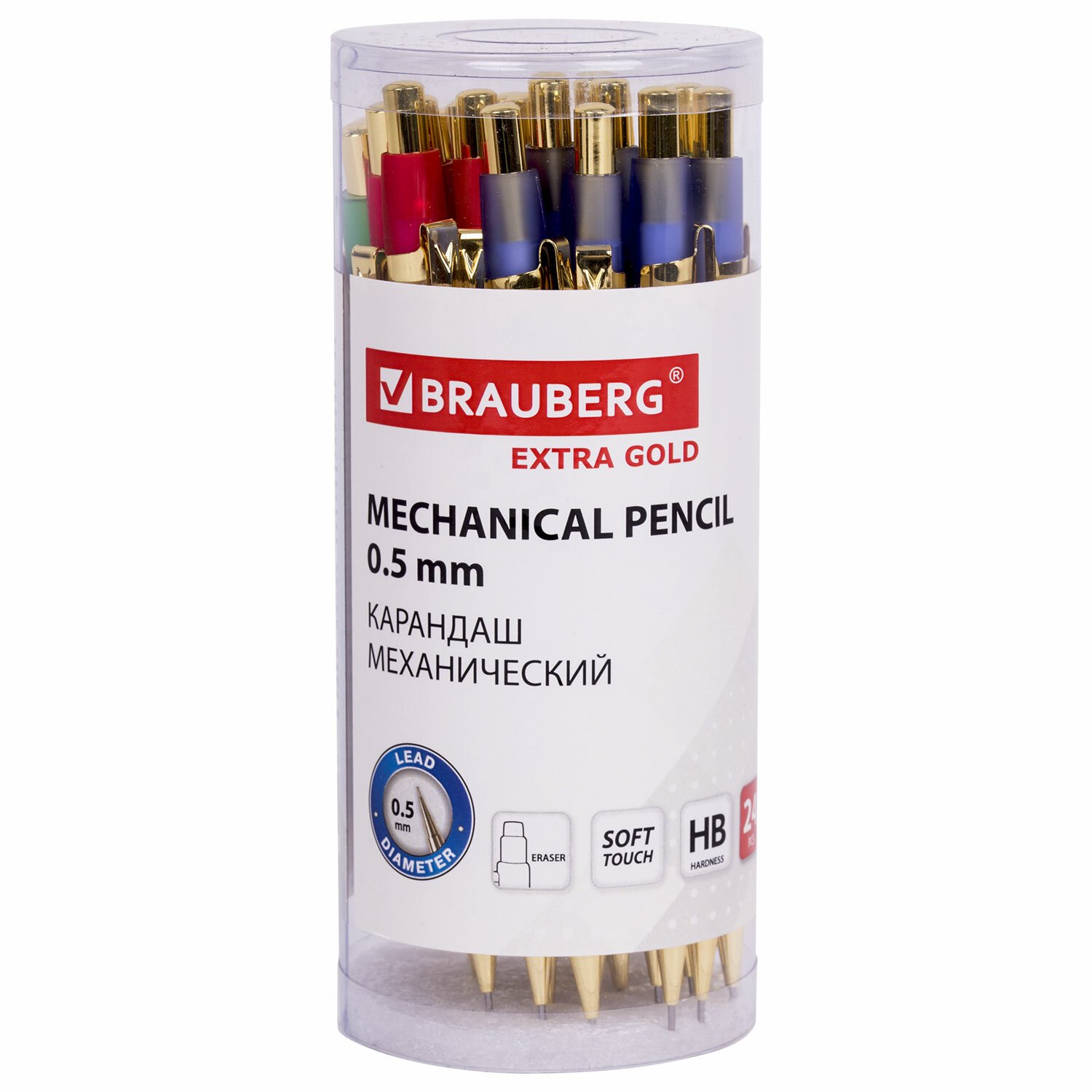 Карандаш механический 0,5 мм, HB, BRAUBERG EXTRA GOLD, ластик, корпус SOFT TOUCH, ассорти, 181963