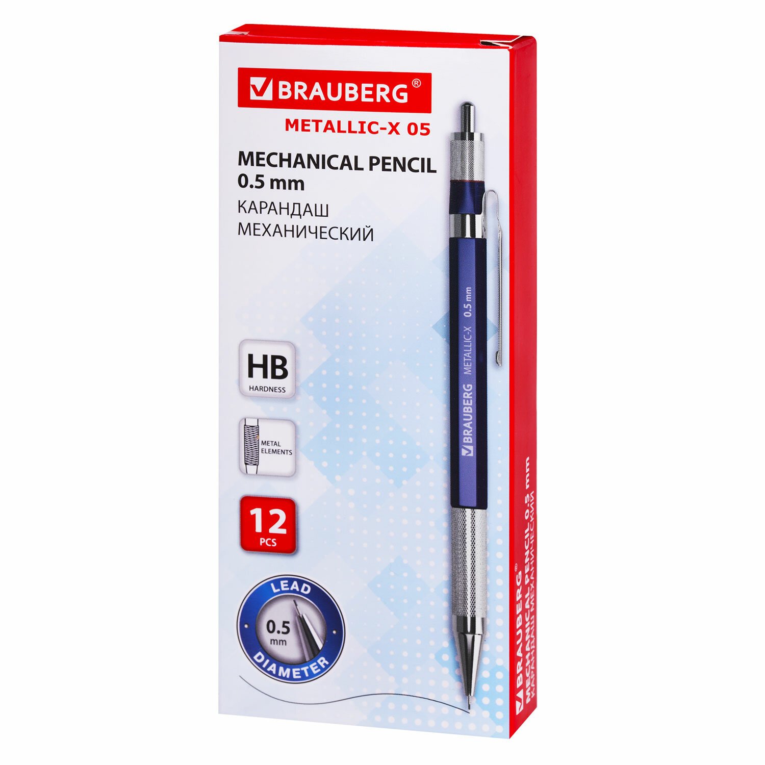 Карандаш механический 0,5 мм, HB, BRAUBERG METALLIC X-05, металлические детали, 181974