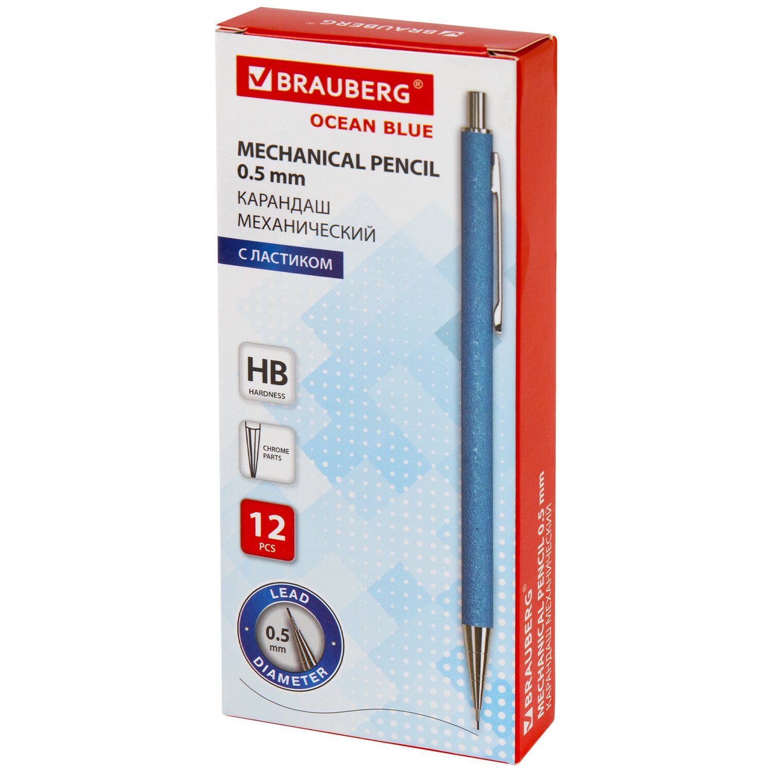 Карандаш механический 0,5 мм, HB, BRAUBERG OCEAN BLUE, металлический корпус, 181978