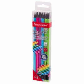 Набор карандашей чернографитных BRAUBERG "ULTRA COLOR" 12 шт., HB, с ластиком, пластиковые, 181710