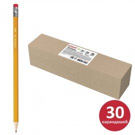 Карандаши чернографитные простые с ластиком HB, ВЫГОДНАЯ УПАКОВКА КОМПЛЕКТ 30 штук, STAFF, 181881