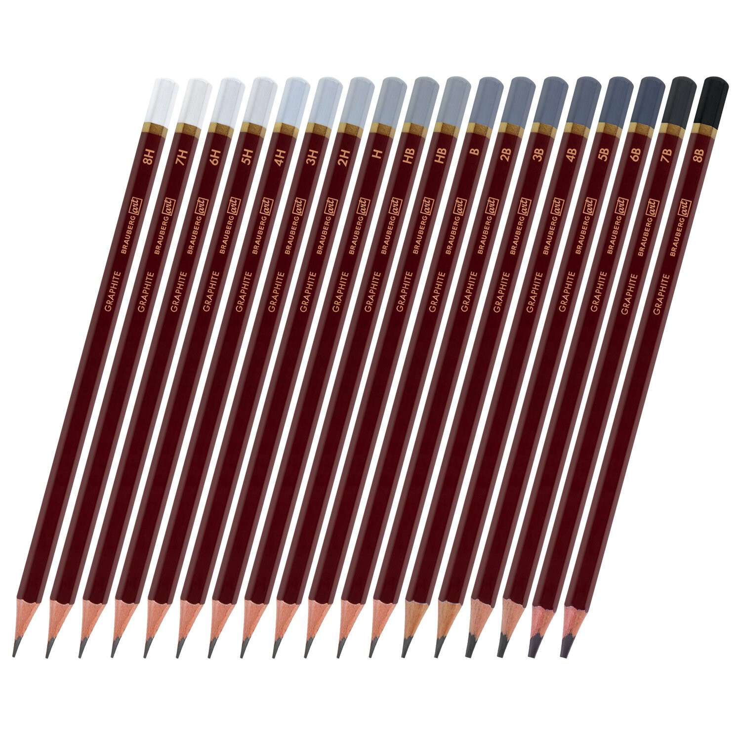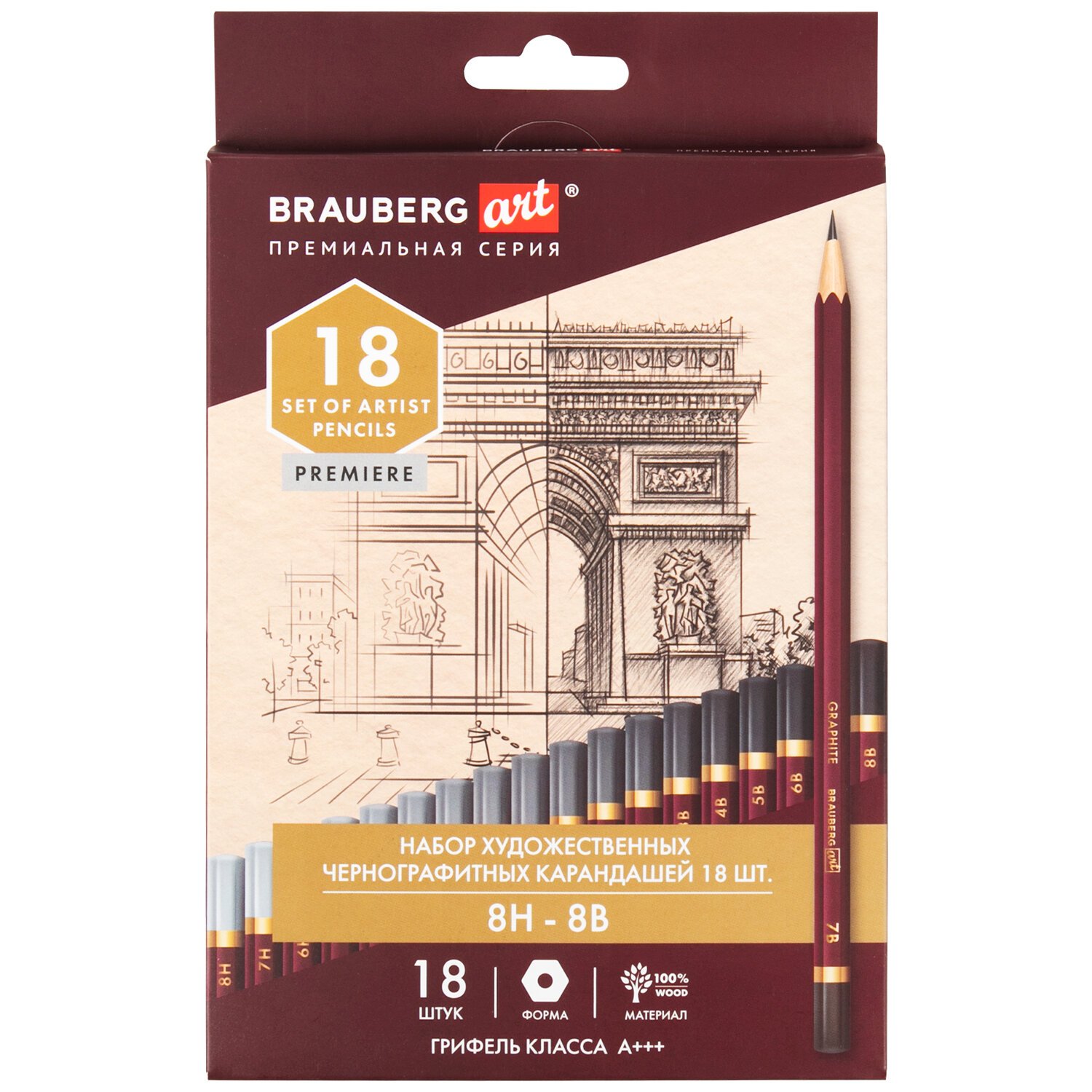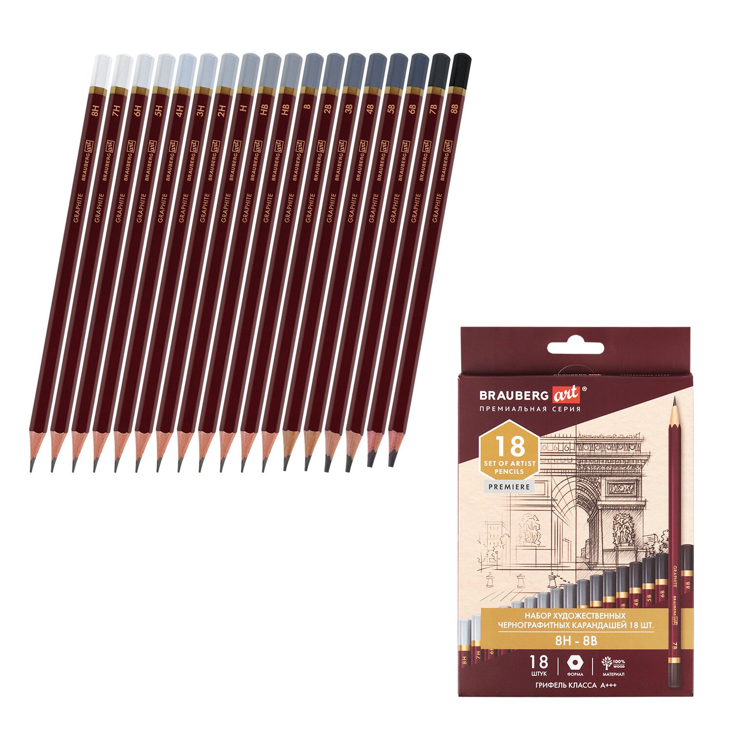 Карандаши чернографитные профессиональные 8H-8B НАБОР 18 штук, BRAUBERG ART "PREMIERE", 181893