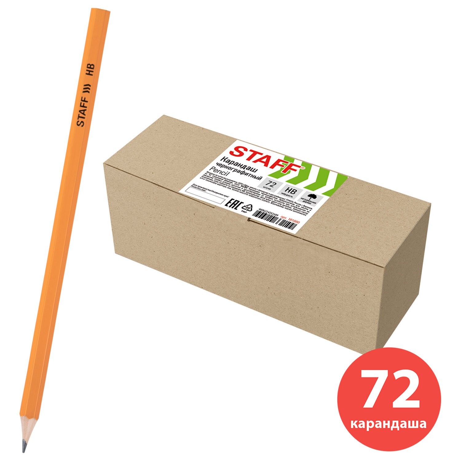 Карандаши чернографитные простые HB, ВЫГОДНАЯ УПАКОВКА КОМПЛЕКТ 72 штуки, STAFF, 181880