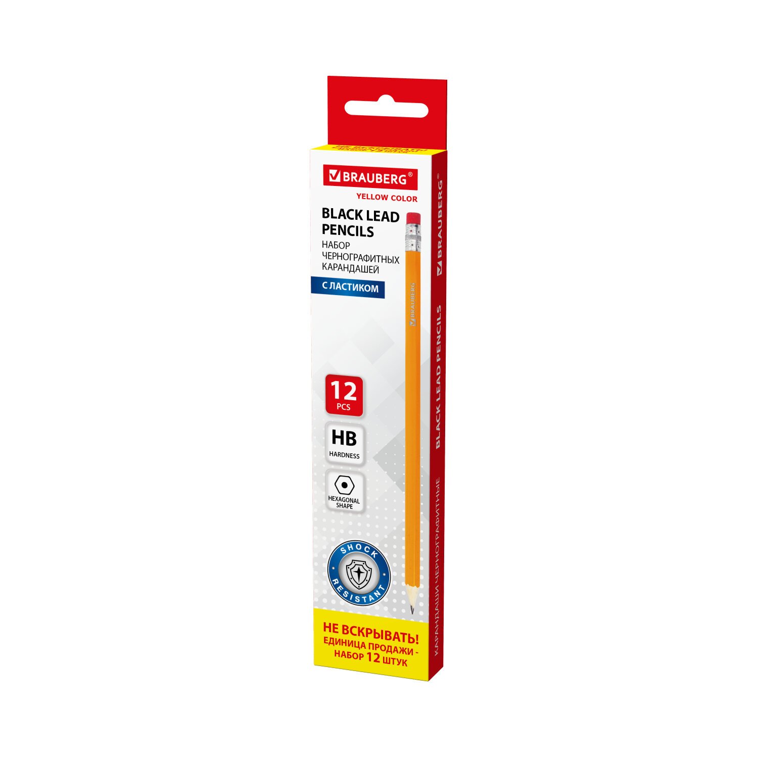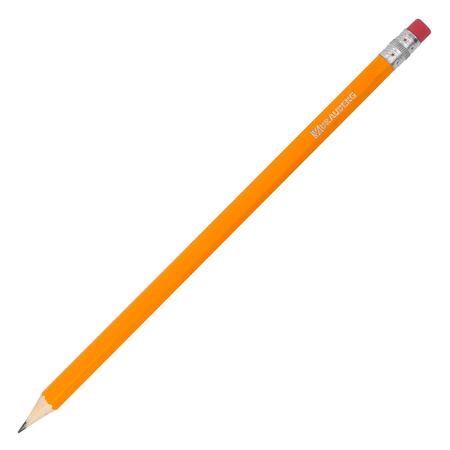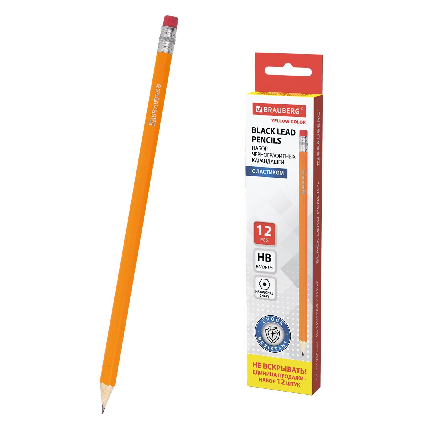 Карандаши чернографитные простые с ластиком HB, ВЫГОДНАЯ УПАКОВКА КОМПЛЕКТ 12 штук, BRAUBERG, 180635