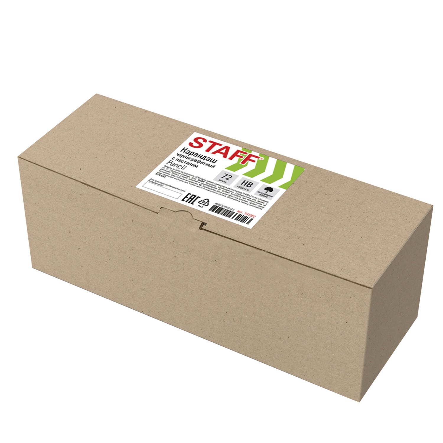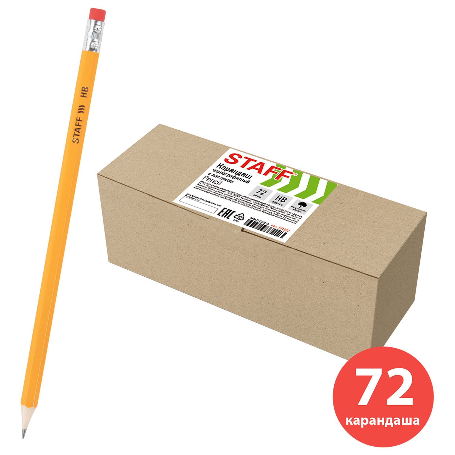 Карандаши чернографитные простые с ластиком HB, ВЫГОДНАЯ УПАКОВКА КОМПЛЕКТ 72 штуки, STAFF, 181882