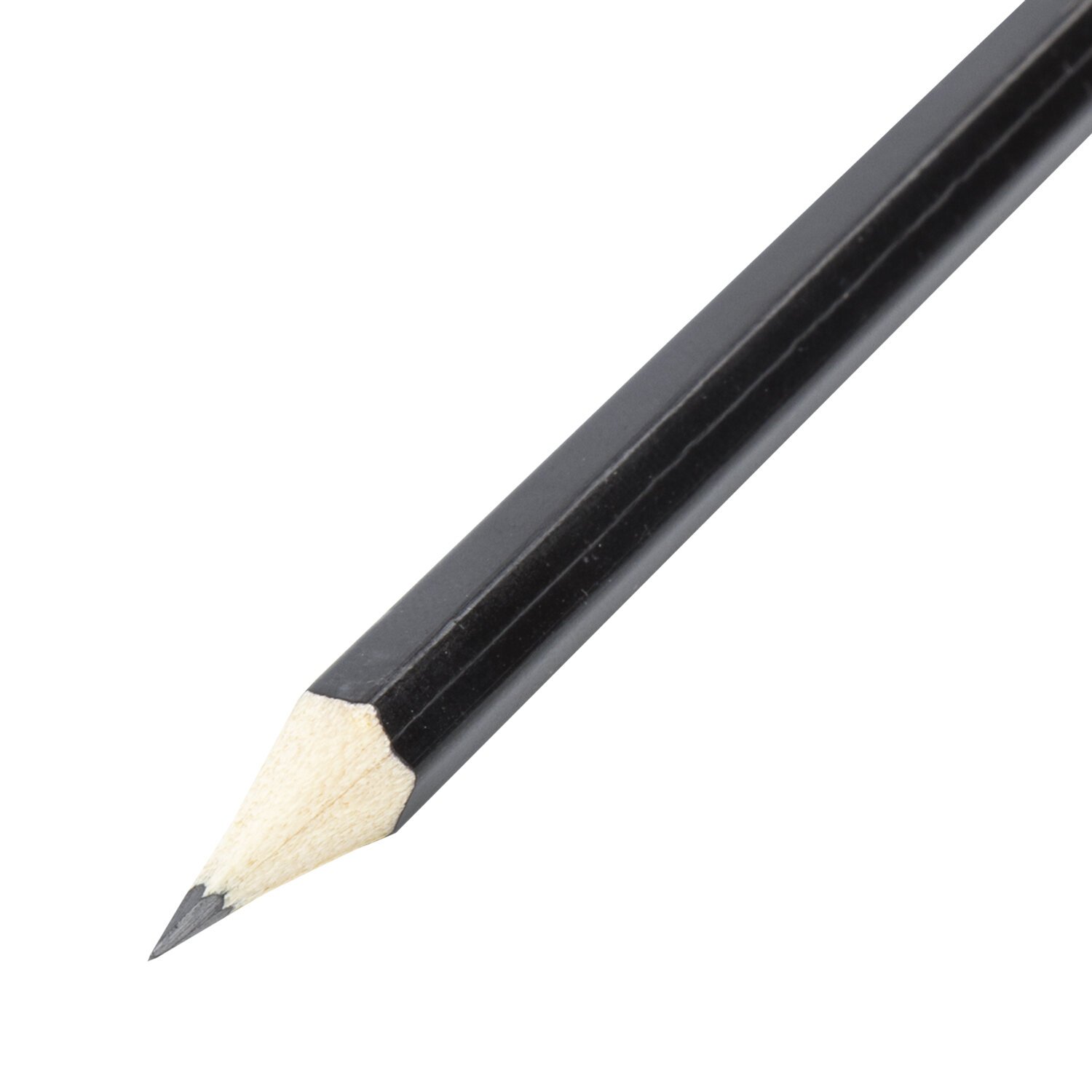 Карандаши изготовлены из дерева высокого качества. Имеют шестигранное сечение. Карандаши длиной 176 мм легко точатся и не крошатся. Набор состоит из карандашей различных степеней твердости – 2H - 1 штука, Н - 1 штука, НВ - 2 штуки, В - 1 штука и 2B - 1 штука. Диаметр грифеля - 2,05 мм. Выполнены в черном цвете. Поставляются заточенными.