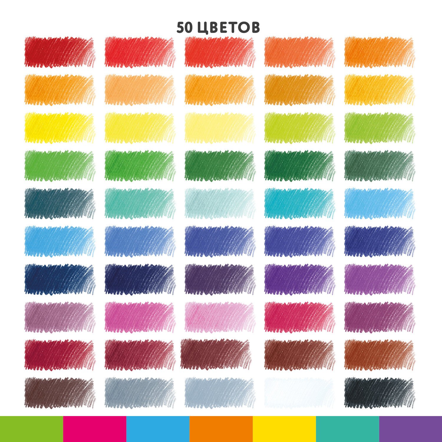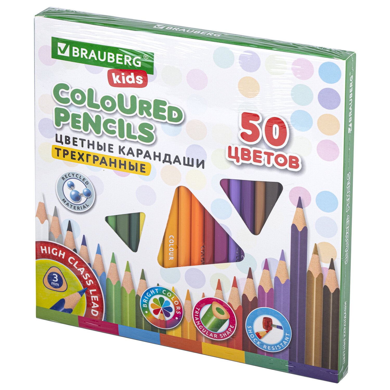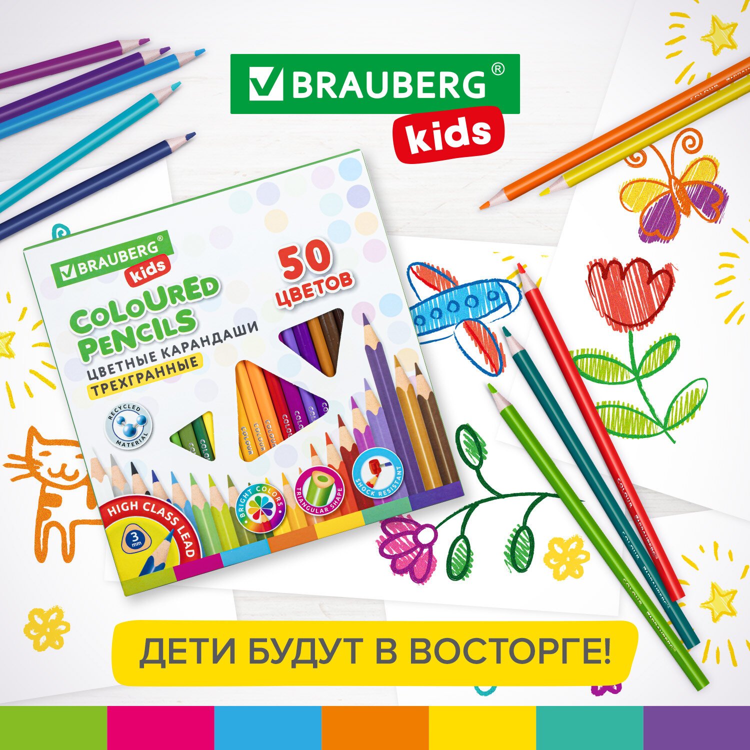 Карандаши цветные BRAUBERG KIDS, 50 цветов, трехгранные, грифель 3 мм, 181946