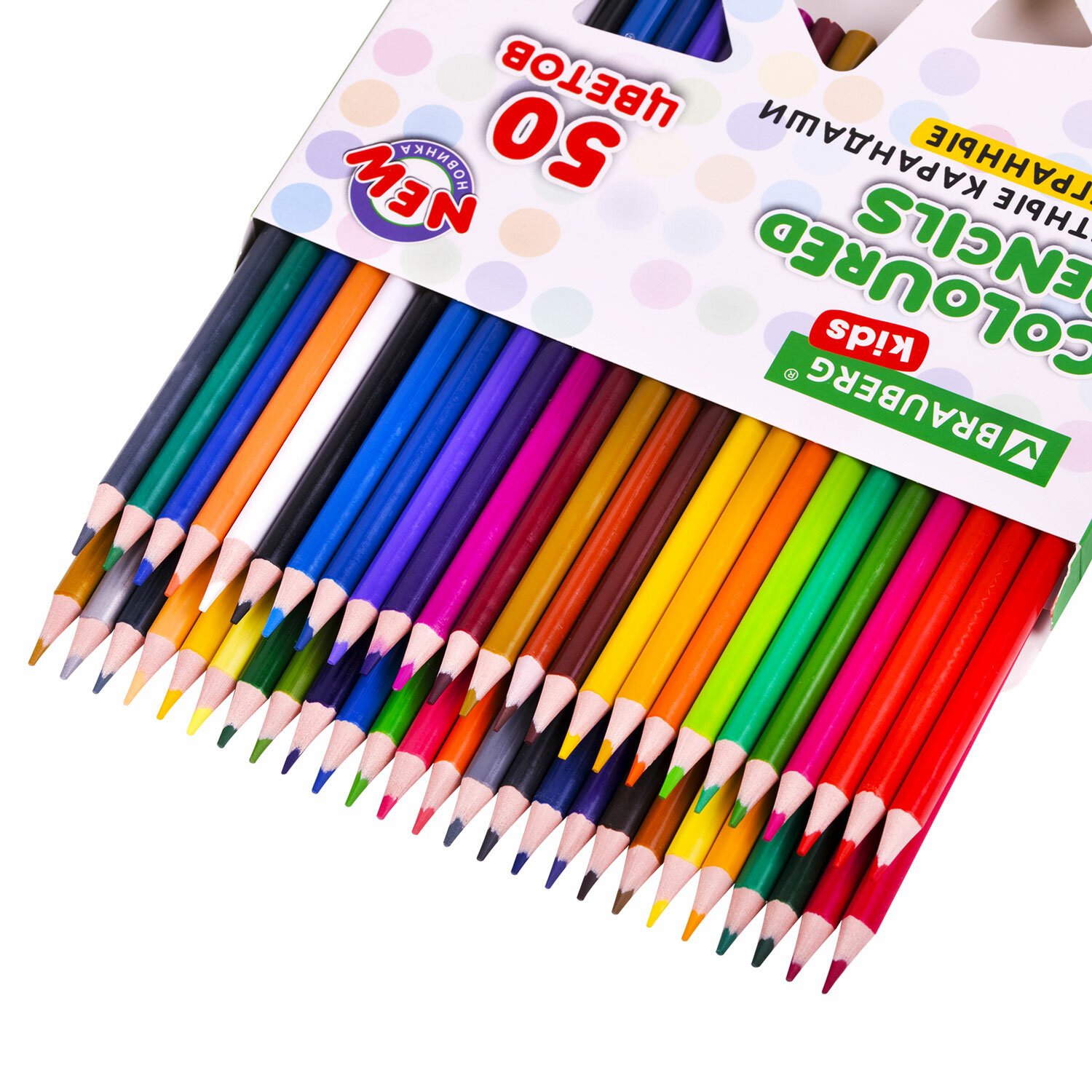 Карандаши цветные BRAUBERG KIDS NEW, 50 цветов, трехгранные, грифель 3 мм, 182004
