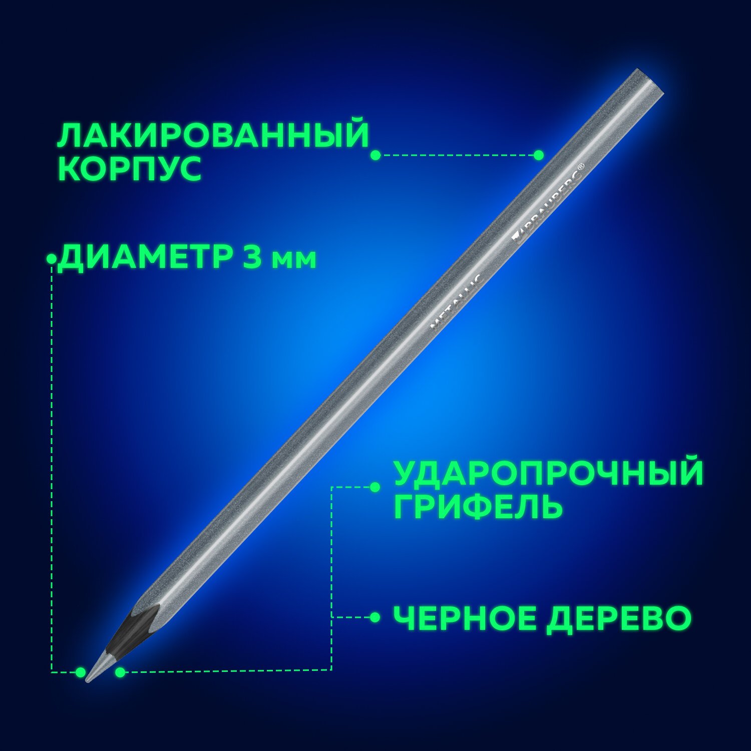 Трехгранные цветные карандаши высокого качества из чёрного дерева BRAUBERG серии METALLIC обеспечивают гладкое письмо благодаря мягкому грифелю. Особое качество красящего пигмента гарантирует яркие неоновые цвета.