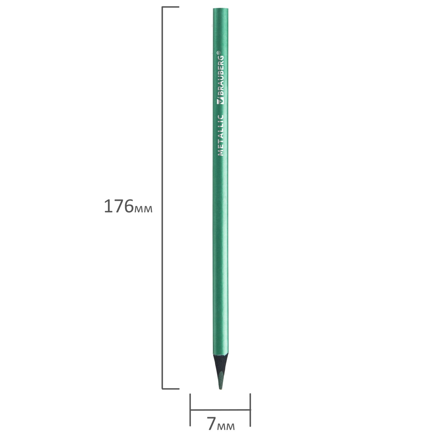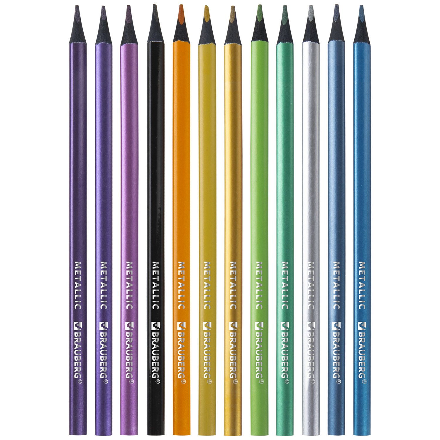 Карандаши цветные BRAUBERG METALLIC, 12 цветов металлик, трехгранные, грифель 3 мм, черное дерево, 181853