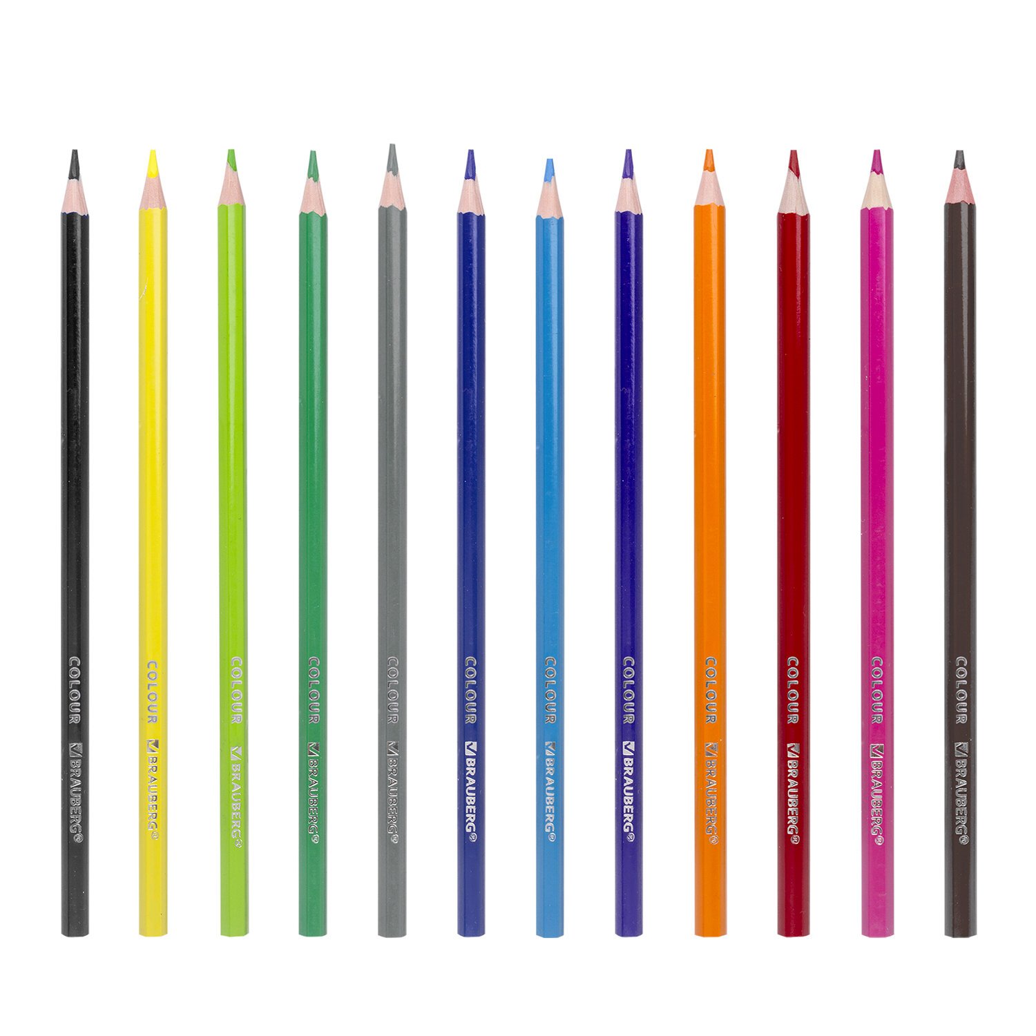 Карандаши цветные BRAUBERG, 12 цветов, цветной корпус, упаковка ПВХ бокс, шестигранные, 182067