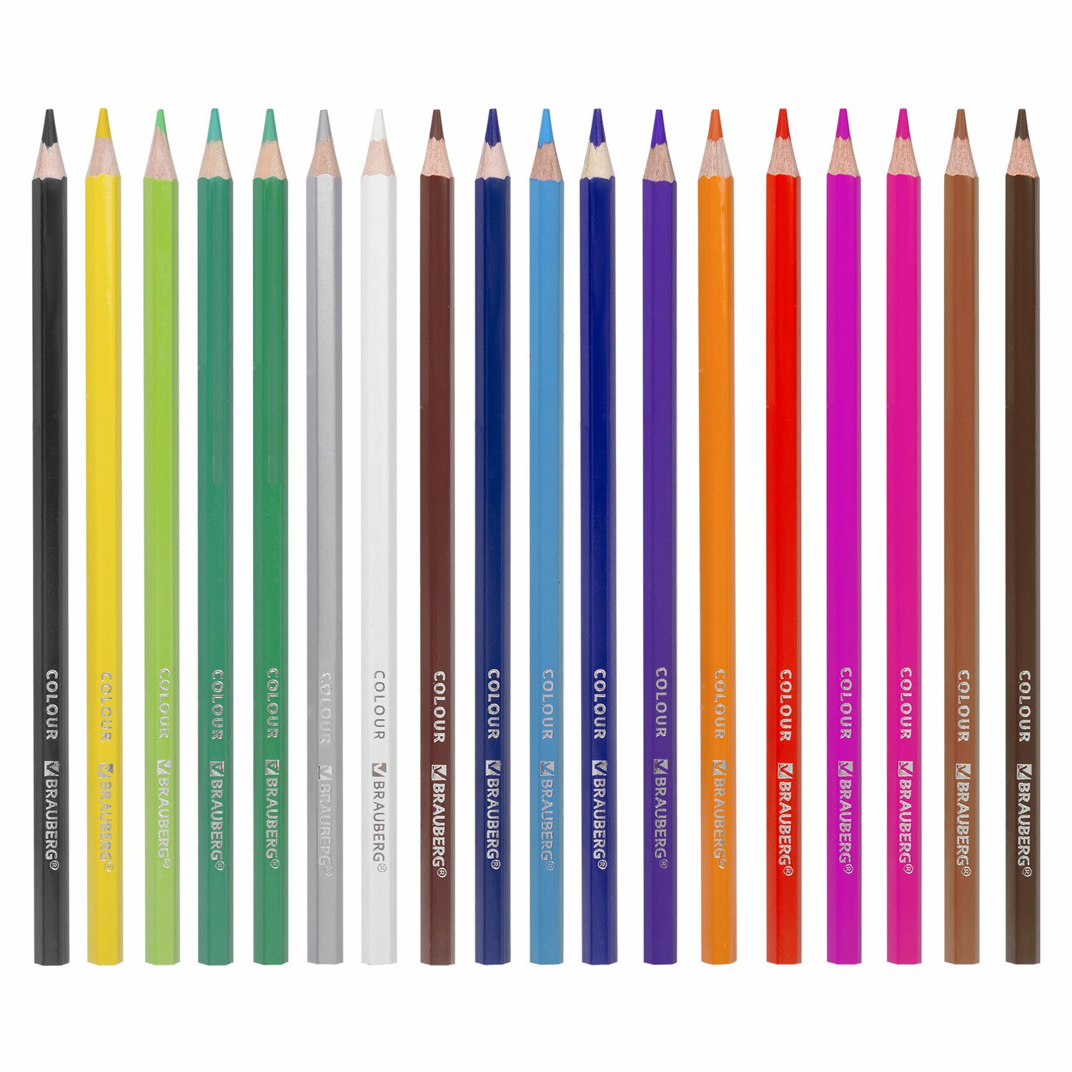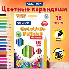 Карандаши цветные мягкие BRAUBERG АКАДЕМИЯ, 18 цветов, шестигранные, грифель 3 мм, натуральное дерево, 181865