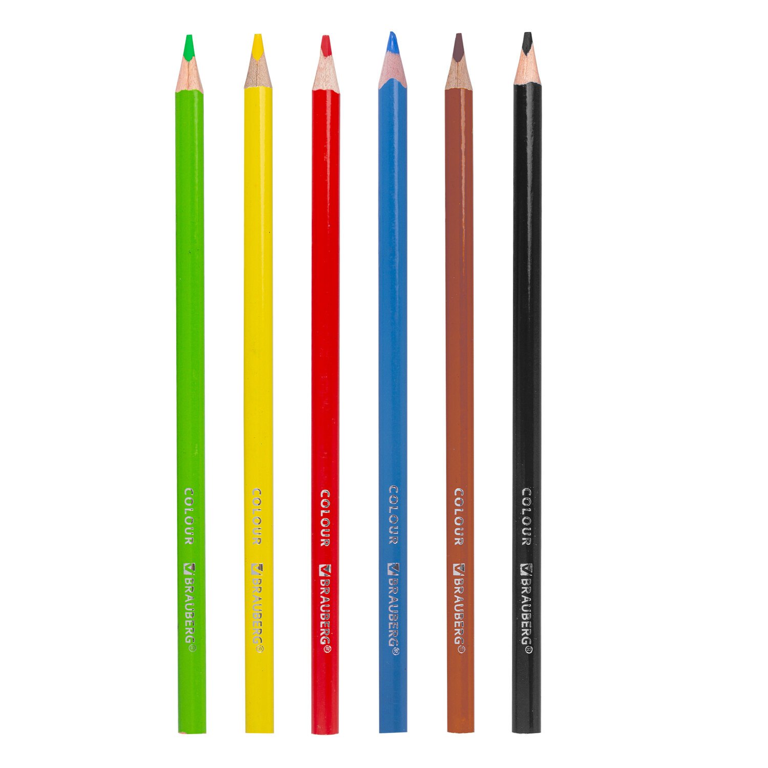 Карандаши цветные BRAUBERG PREMIUM, 6 цветов, трехгранные, грифель 3,3 мм, натуральное дерево, 181650