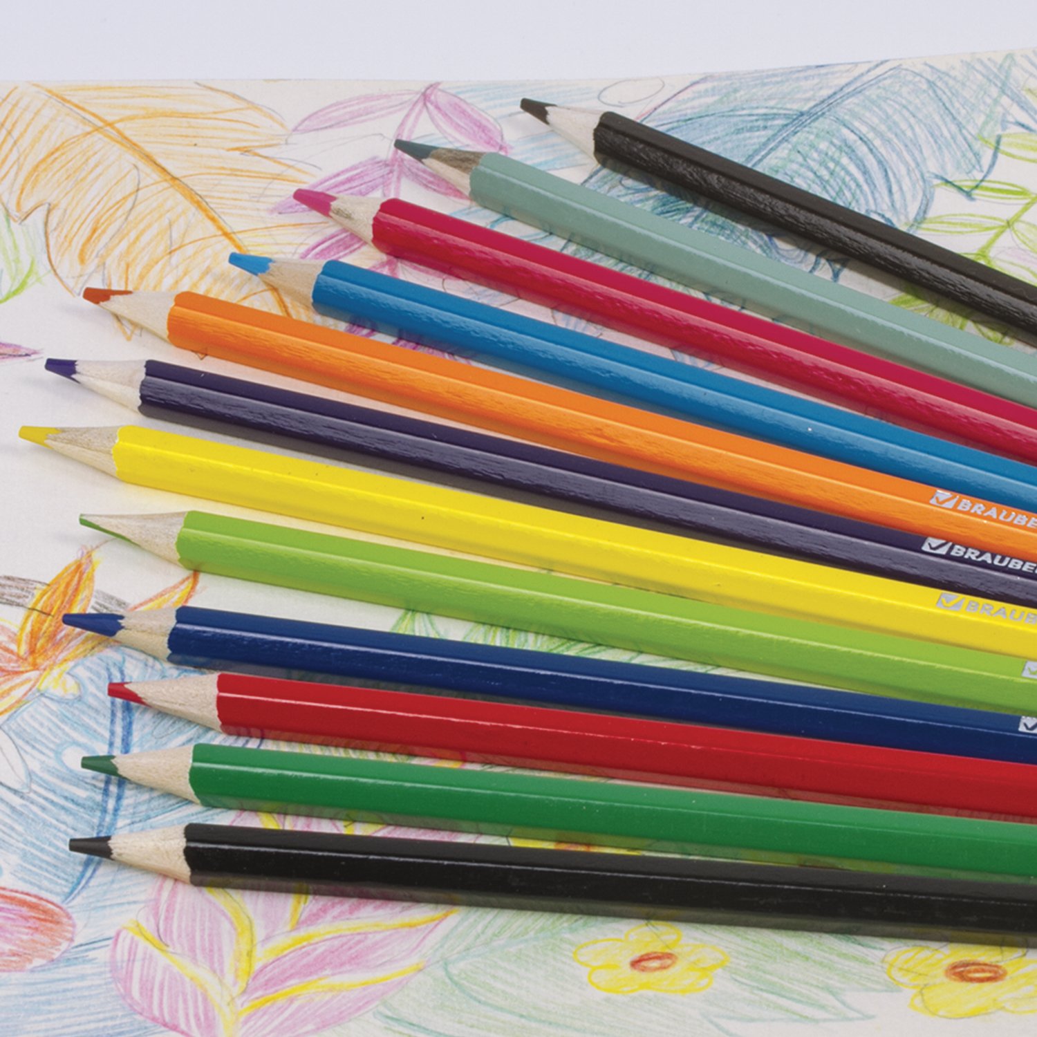 Карандаши цветные BRAUBERG "Star Patrol", 12 цветов, шестигранные, грифель 3 мм, натуральное дерево, 180532