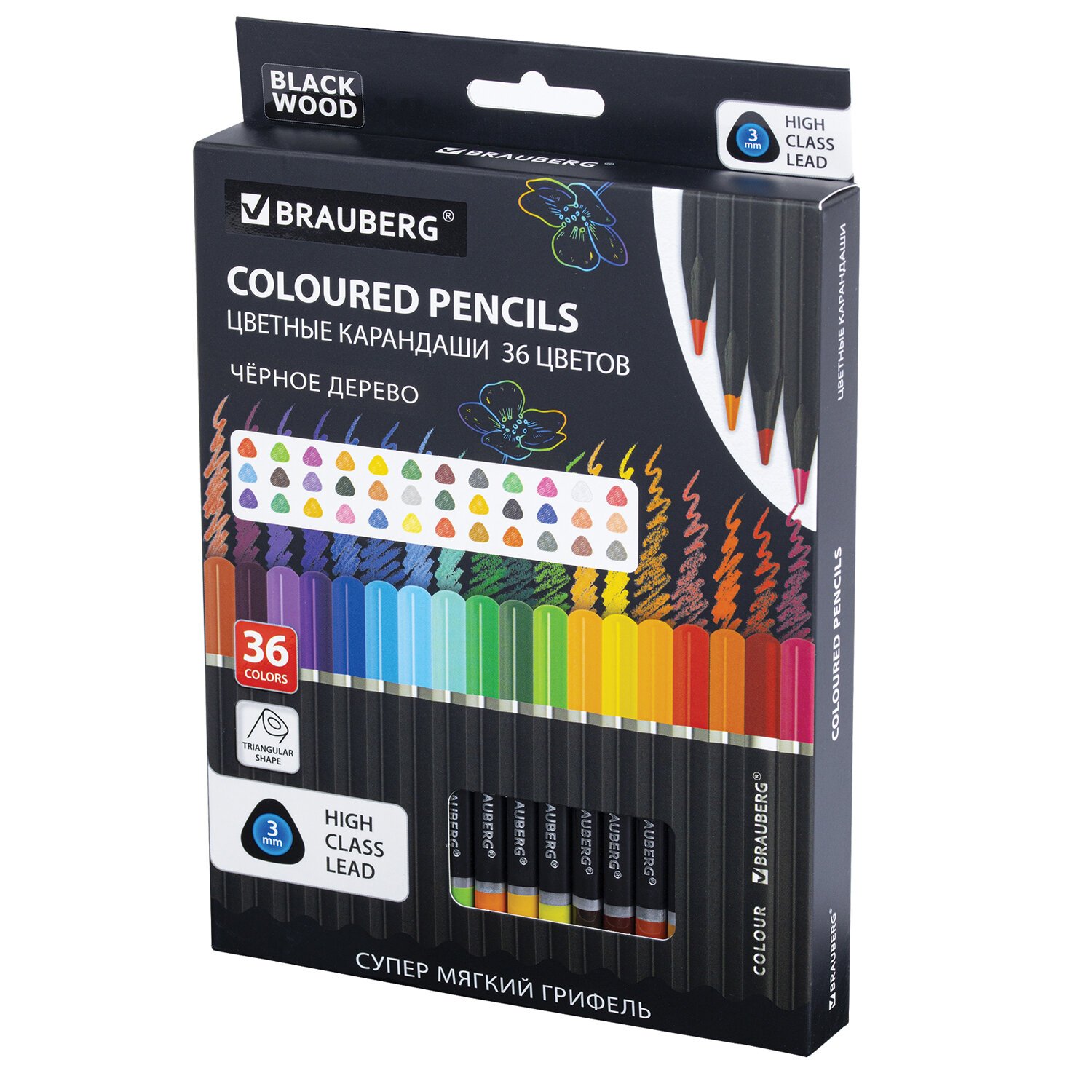 Трехгранные цветные карандаши BRAUBERG BLACK WOOD в стильном матовом корпусе из черного дерева обеспечивают гладкое письмо благодаря супер мягкому грифелю. Особое качество красящего пигмента обеспечивает насыщенные яркие цвета.