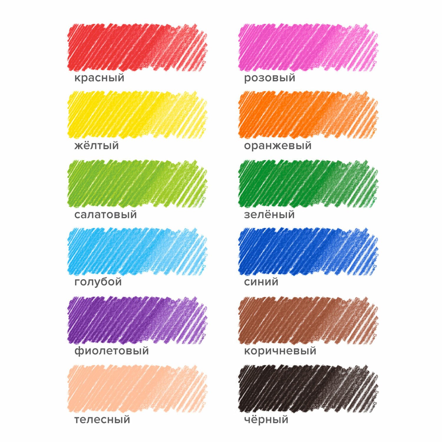 Восковые мелки ПИФАГОР "СОЛНЫШКО", НАБОР 12 цветов, 227279