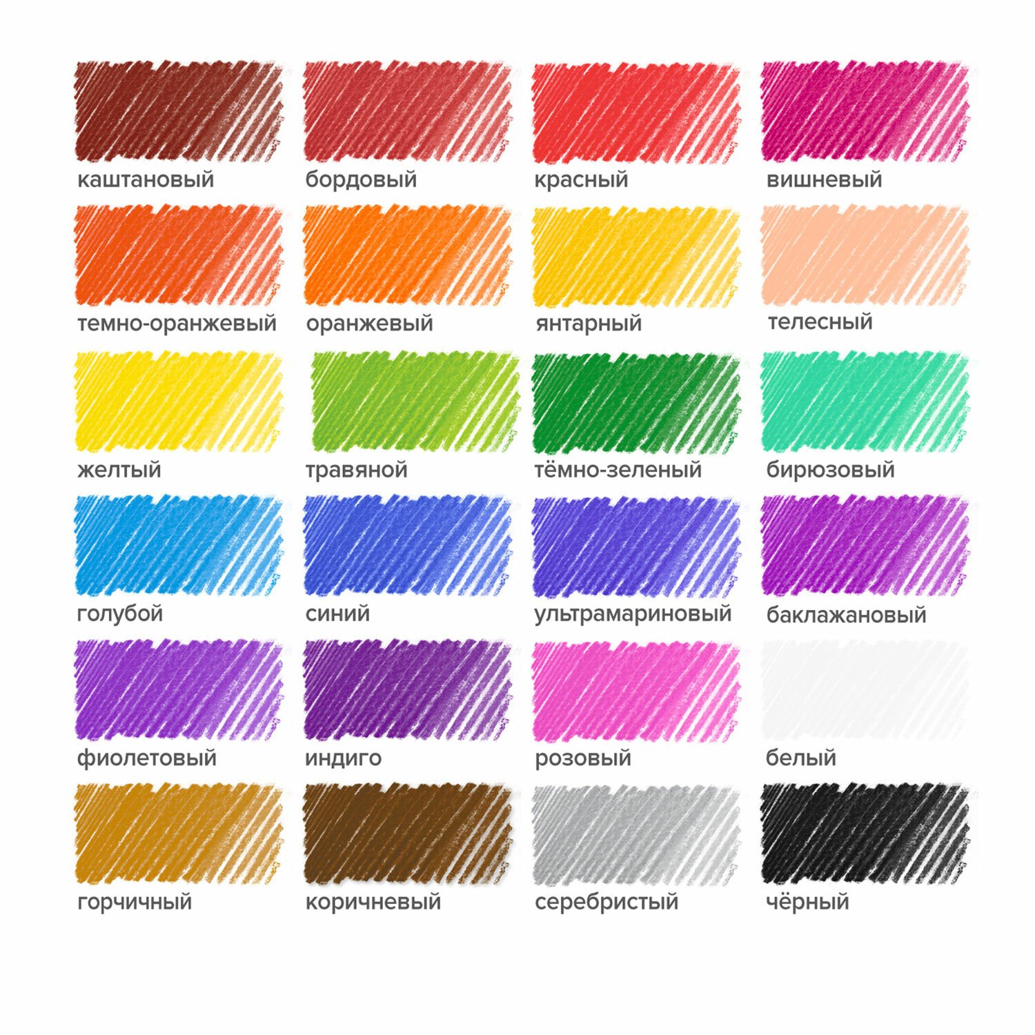 Специальное покрытие и многослойная лакировка уменьшают скольжение, что делает процесс рисования максимально комфортным. Мягкий, ударопрочный грифель не ломается и не крошится при заточке. Яркие, насыщенные цвета, равномерное закрашивание поверхности.